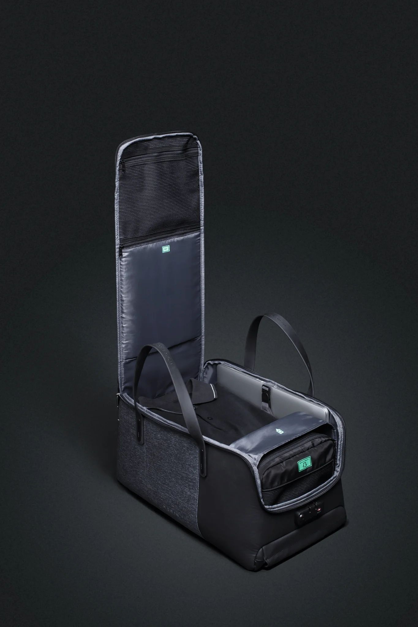 Также сумка оснащена продуманной системой безопасности: блокировка застежек молнии на кодовый замок TSA007, стальной трос для крепления к неподвижным предметам, оригинальные молнии YKK8RCW, а несущие лямки при ношении не врезаются в руку. Съемный плечевой ремень с регулируемой длиной имеет мягкую подкладку для плеча.