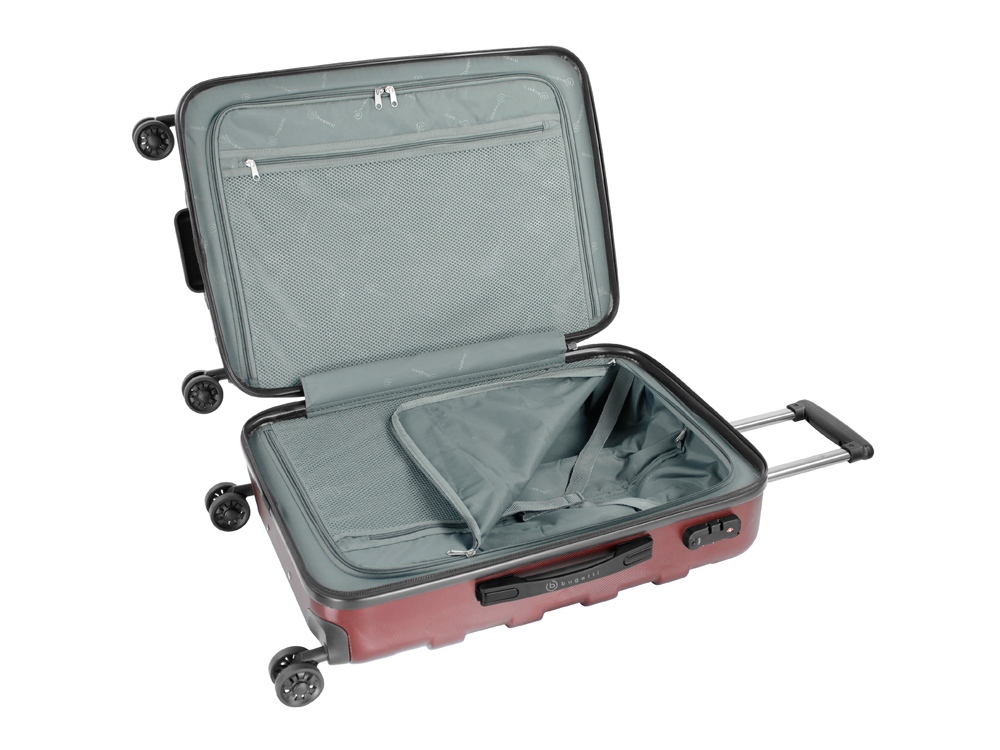 Galatea - наша неповторимая серия чемоданов с рельефно нанесённым на корпус большим логотипом Bugatti. Вся товарная линейка представлена в классическом черном и бордовом цветах. Благодаря корпусу, сделанному из смеси АБС-пластика и поликарбоната, каждая модель отличается лёгким весом и повышенной прочностью. Четыре резиновых колеса с бесшумным ходом и возможностью поворота на 360° обеспечивают ровное движение. Лёгкая телескопическая ручка эргономичной формы фиксируется в нескольких положениях для удобства пользователей с разным ростом. Замок TSA с трехзначным кодом идеально подходит для защиты содержимого багажа от несанкционированного вскрытия. Дополнительная ручка на дне корпуса облегчает загрузку и выгрузку чемодана. Сетчатые разделительные стенки на молнии растягиваются для удобства упаковки, а фиксирующие ремни охватывают большую поверхность и обеспечивают сохранность сложенных вещей.