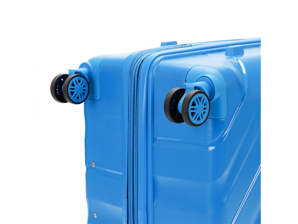 Каждый чемодан из серии В ОТПУСК оборудован удобной ручкой и удивительно легкими двойными колесами, что обеспечивает максимальную маневренность и комфорт во время путешествий.