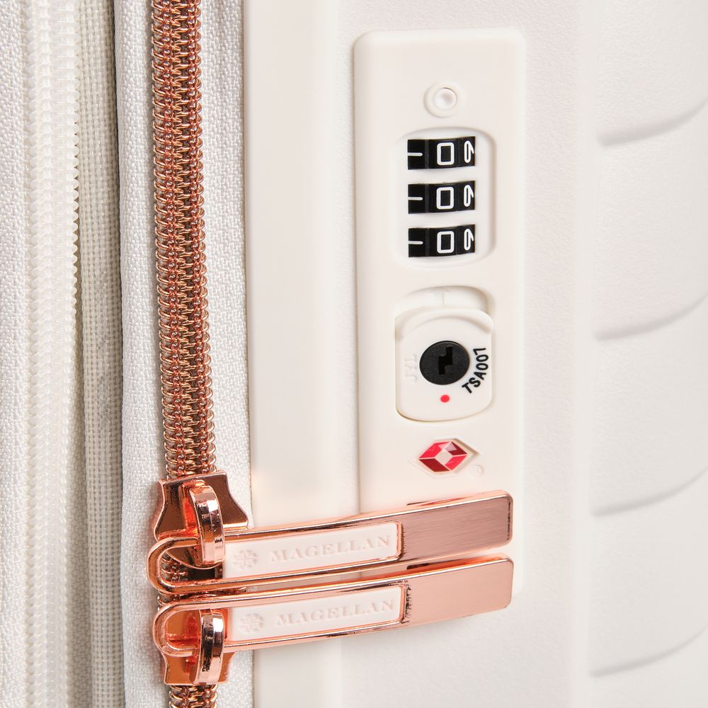 - Блок крепления колеса встроен в корпус чемодана, что обеспечивает лучшую устойчивость к внешнему воздействию