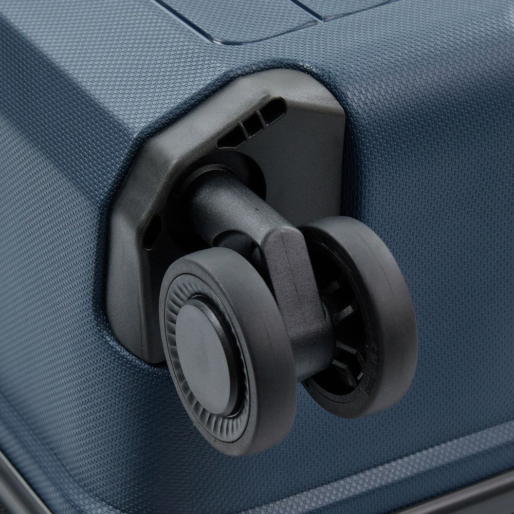 - Блок крепления колеса встроен в корпус чемодана, что обеспечивает лучшую устойчивость к внешнему воздействию