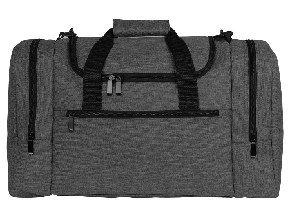 Удобная и прочная сумка для путешествий или походов в спортзал. Два вместительных больших кармана на молниях по бокам и один спереди. Сумка сделана из плотной долговечной ткани. Ремень на плечо отстегивается и регулируется по длине.