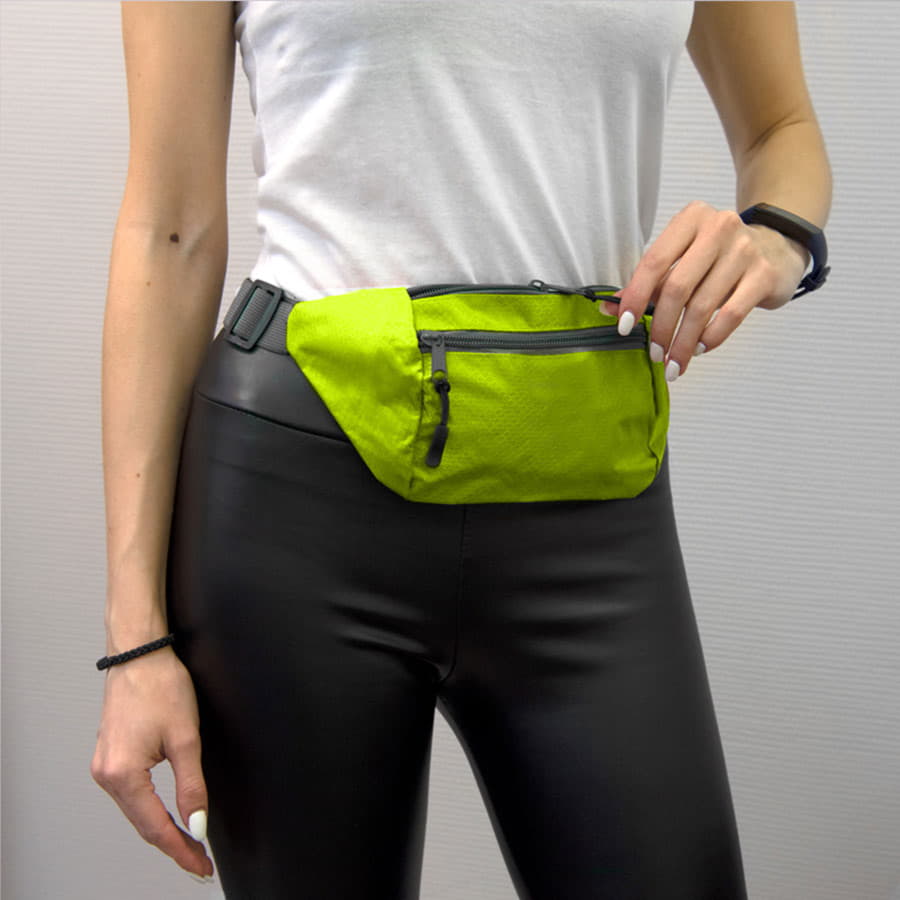 Поясная сумка из интересного материала рипстоп отлично подойдет для прогулок или занятий на свежем воздухе.