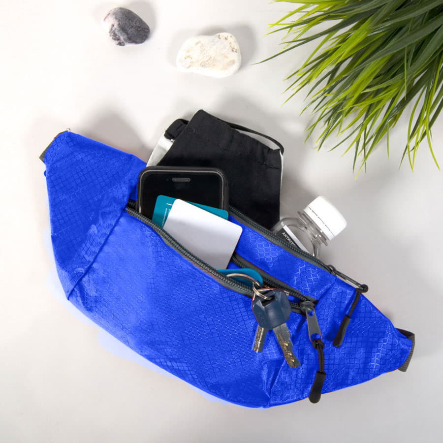 Поясная сумка из интересного материала рипстоп отлично подойдет для прогулок или занятий на свежем воздухе.