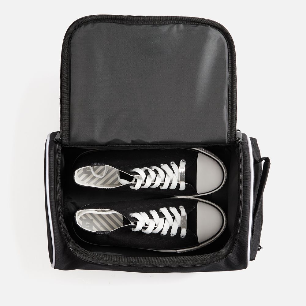 Благодаря боковой ручке Equipex удобно нести отдельно или доставать из большой спортивной сумки. Внешние и внутренние карманы позволяют хранить рядом с парой обуви важные мелочи: средства и аксессуары для ухода, пластыри или запасные носки. В нижней части сумки расположены вентиляционные вставки для проветривания.
