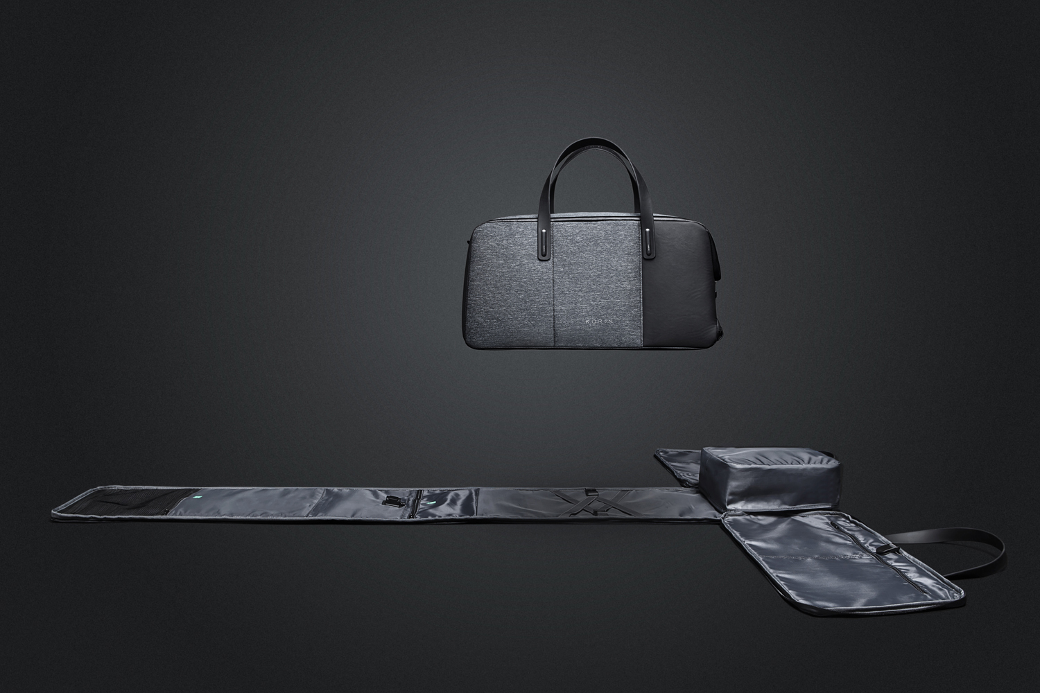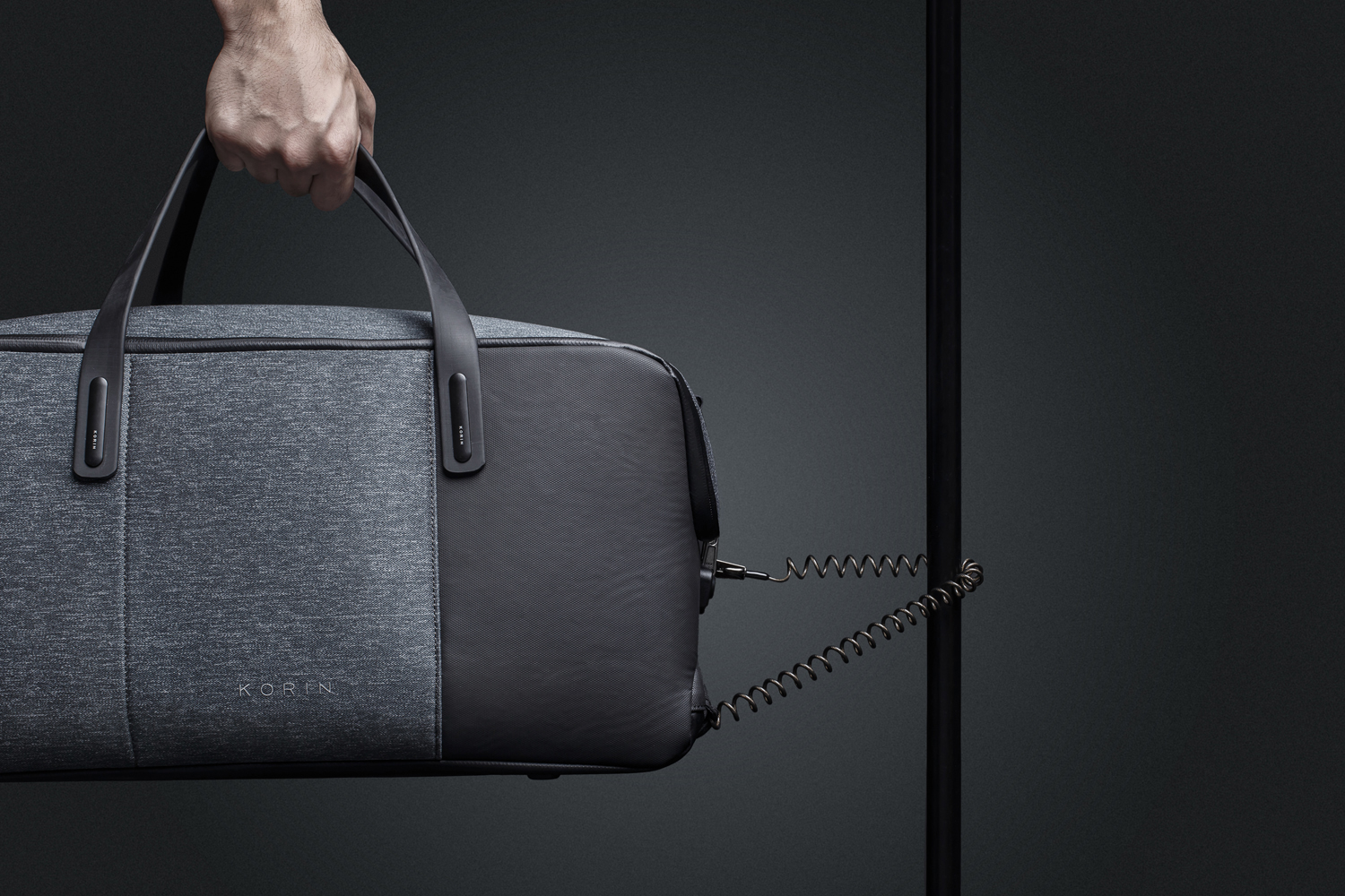 • USB-кабель из внутреннего кармана на молнии 13х18 см соединен с портом на внешней стороне сумки.