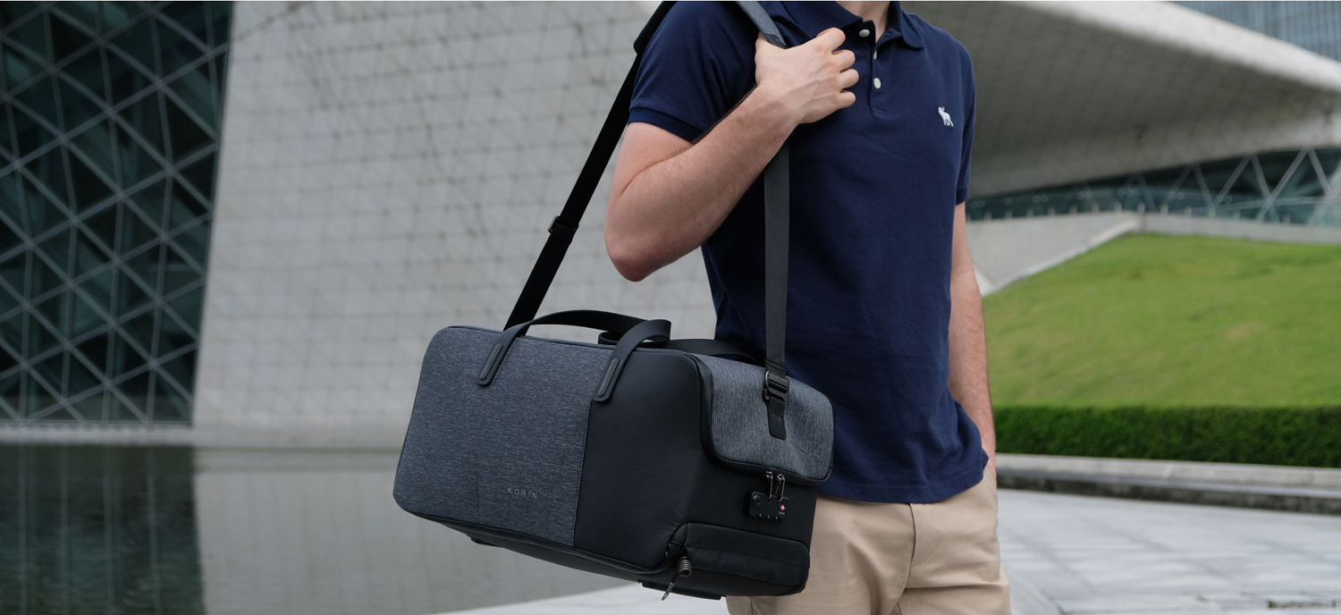 Дорожная сумка-трансформер FlexPack Go со съемным плечевым ремнем и прочными резиновыми ручками, обладатель премий Governor Cup Industrial Design Excellence Award, Upstyle Award 2018. Сделана из прочного устойчивого к порезам и трению водоотталкивающего многослойного полиэстера, не требующего специального ухода. Сумка упакована в черную подарочную коробку размером 35х25х11 см.