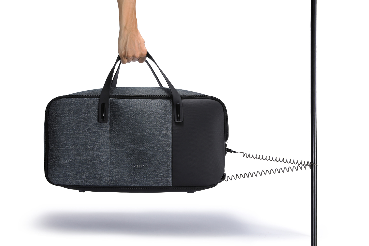 • Молния на дне позволяет превратить карман в лямку для фиксации сумки на ручке чемодана.