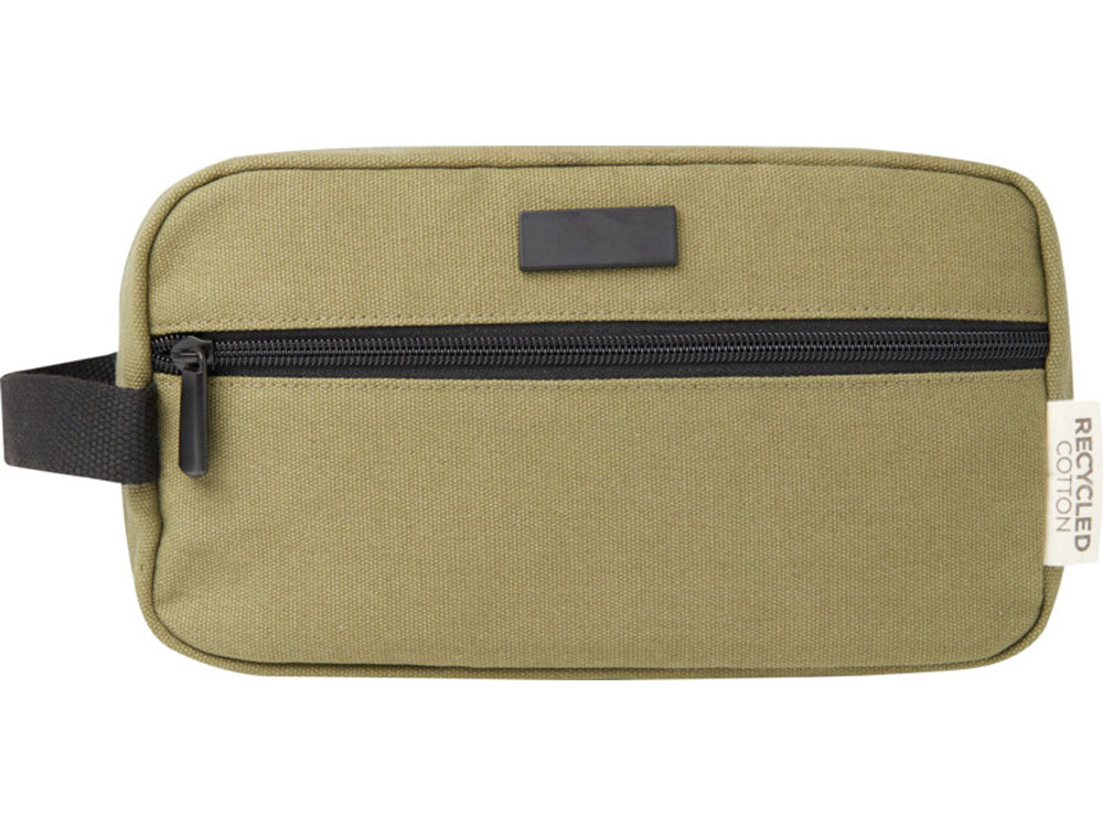 Косметичка из переработанного холста, сертифицированного по стандарту GRS, с подкладкой из переработанного РЕТ-пластика. Имеет передний карман на молнии и одно главное отделение на молнии с карманами для организации, а также удобную лямку. Декоративная металлическая пластина может придать логотипу сияние благодаря утонченному матовому покрытию. Емкость: 3,5 литр.