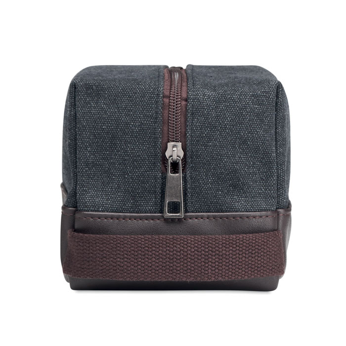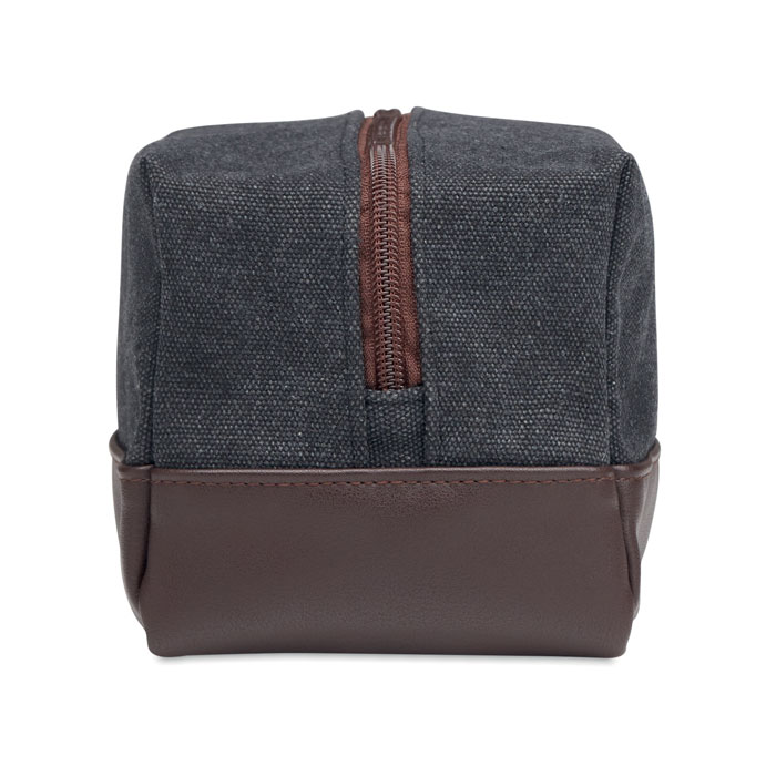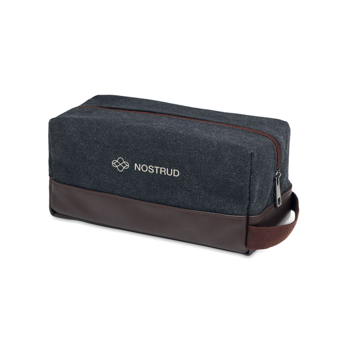 Косметичка на молнии из высококачественной жатой ткани плотностью 450 г/м². Подкладка из RPET 210D. Боковой ремешок и дно из переработанного полиуретана.