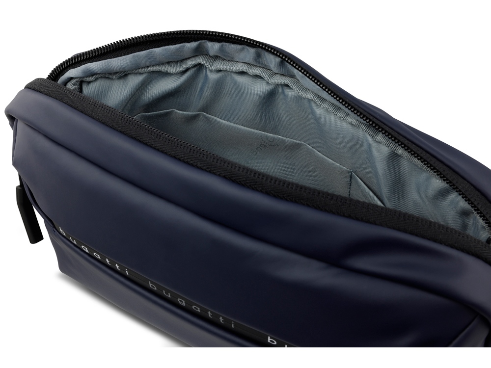 Внешняя организация: передний карман на молнии, задний карман на молнии, регулируемый поясной ремень (от 75 до 160 см)