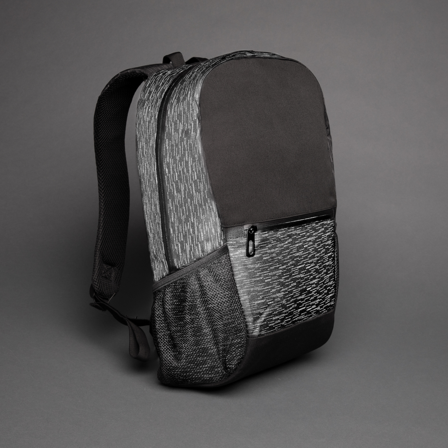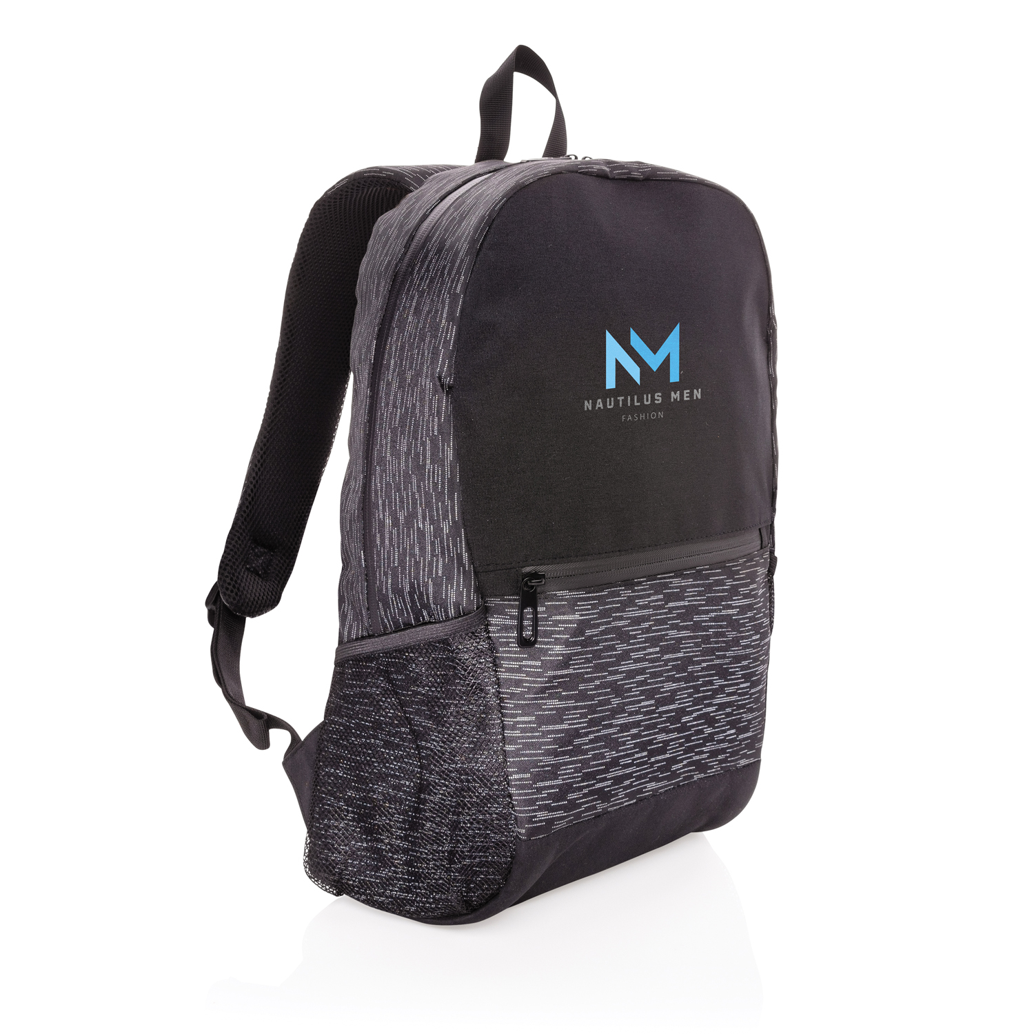 Будьте заметными с этим рюкзаком для ноутбука, сделанным из 100% переработанного полиэстера с добавлением индикаторных частиц AWARE™. Наличие индикатора гарантирует использование подлинных переработанных материалов, а также экономию воды в процессе производства. Светоотражающий принт на всех поверхностях изделия. Рюкзак вмещает ноутбук диагональю 15,6 дюймов, есть дополнительный внешний карман на молнии и 2 боковых сетчатых кармана. Регулируемые лямки. Без ПВХ. При производстве этой модели было сэкономлено 8 литров воды и переработано 16 пластиковых бутылок.