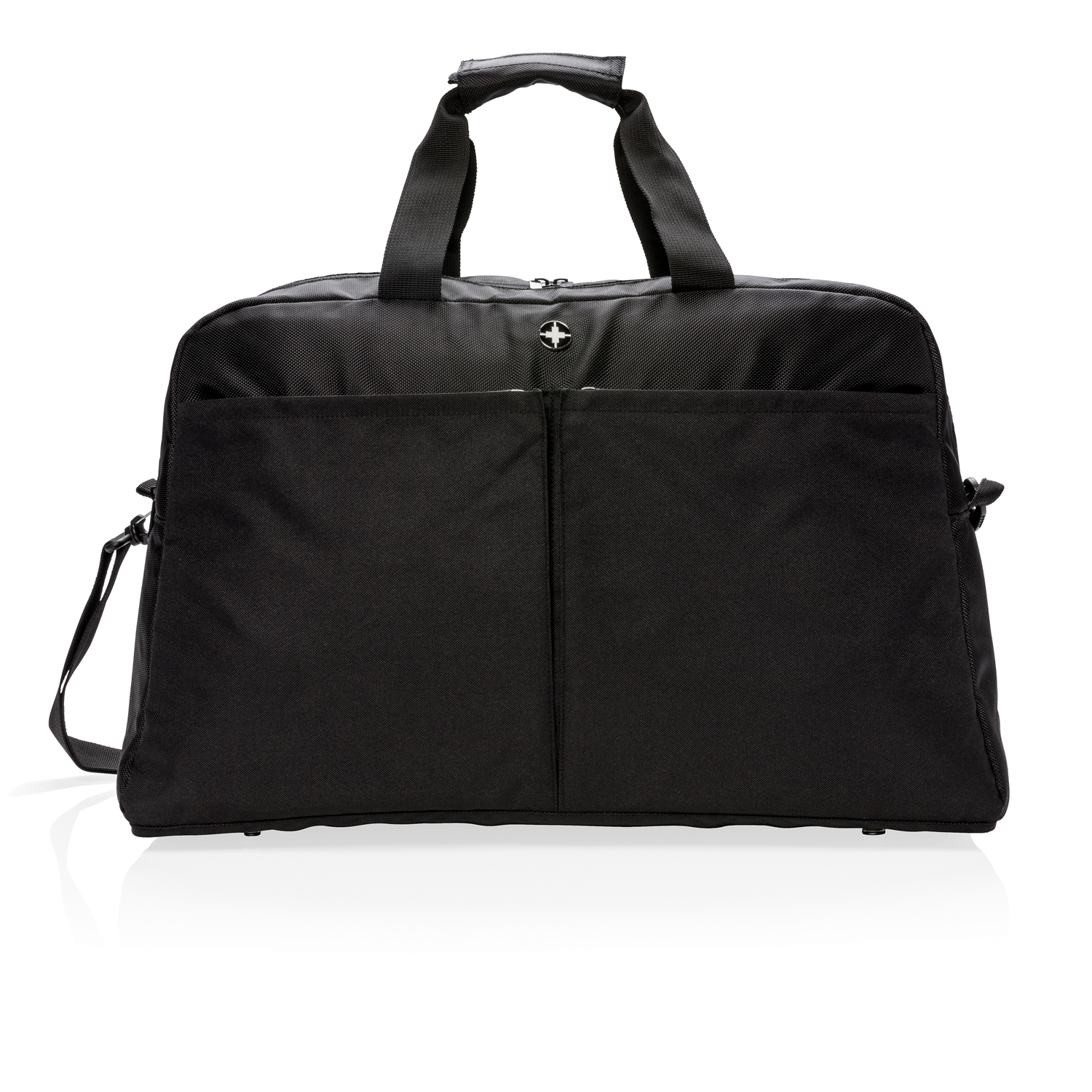 Его удобно носить с собой, как сумку, при этом организация пространства для вещей и открытие - как у полноценного чемодана. Молнии по бокам обеспечивают доступ к каждому из отделов. Отделение для ноутбука размером 15.6’’. С задней части - карман для журналов, а также удобно расположенное отделение на молнии с RFID защитой. В передней части - два объемных кармана на молнии. Материал не содержит ПВХ.