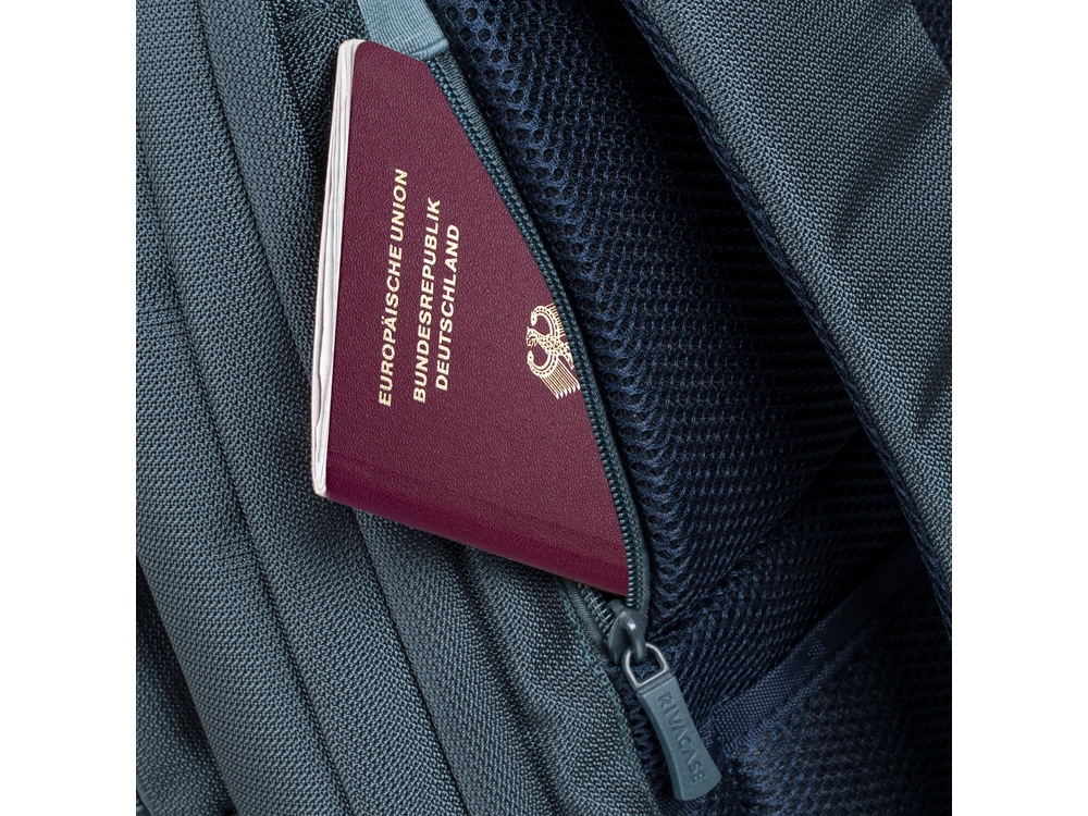 • На задней стенке имеется ремень крепления к багажной сумке и скрытый карман на молнии для паспорта, бумажника.