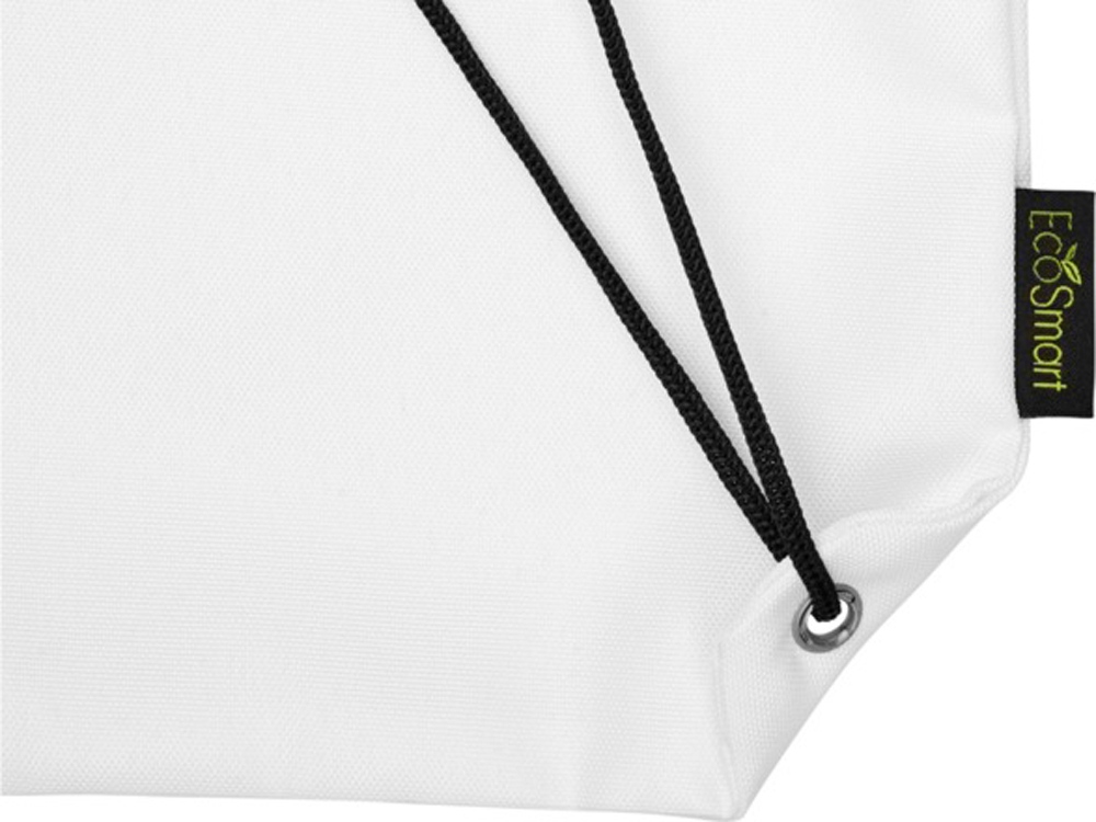 Прочный рюкзак, изготовленный на 100 % из переработанного пластика, предназначенного для повторного использования, что способствует уменьшению количества пластиковых отходов. Каждый пакет сделан из 3,5 переработанных бутылок из ПЭТ пластика. Большое основное отделение затягивается на шнурок черного цвета. Вместимость: 5 литров, прочность до 5 кг.