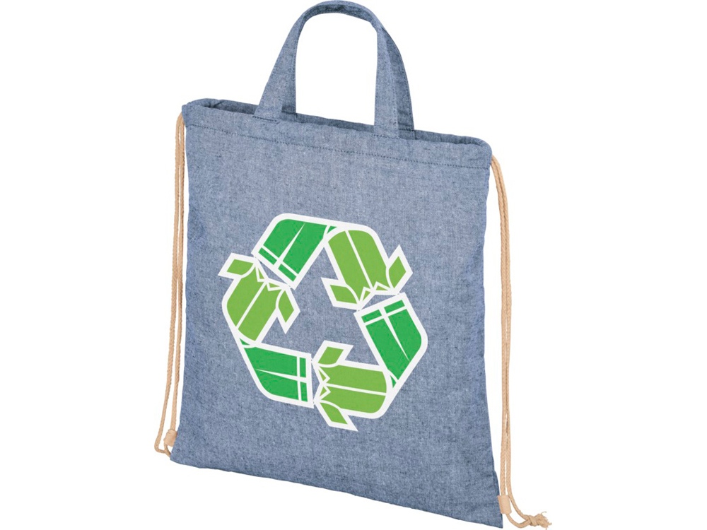 Вторичный хлопок изготавливается из отходов, предназначенных для потребления, которые производятся текстильными фабриками в процессе резки. Большое основное отделение затягивается хлопковым шнурком. Имеет две спадающие ручки высотой 14 см. Прочность до 5 кг.