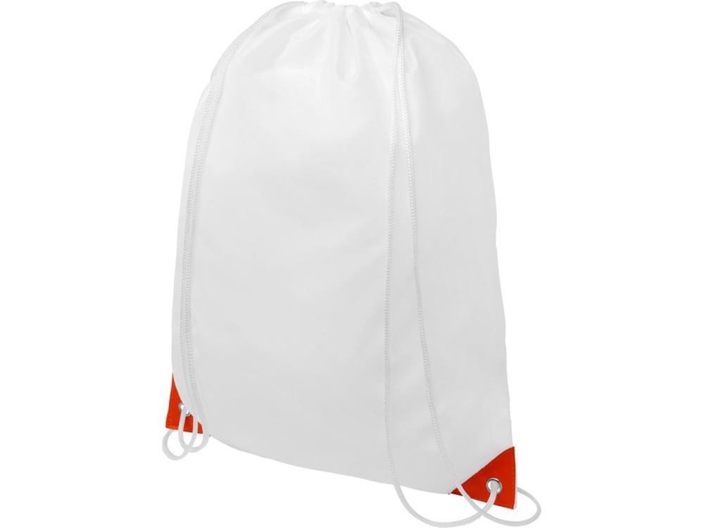 Рюкзак со шнурком и главным отделением на шнуровке белого цвета. Имеет цветные укрепленные углы. Прочность до 5 кг.