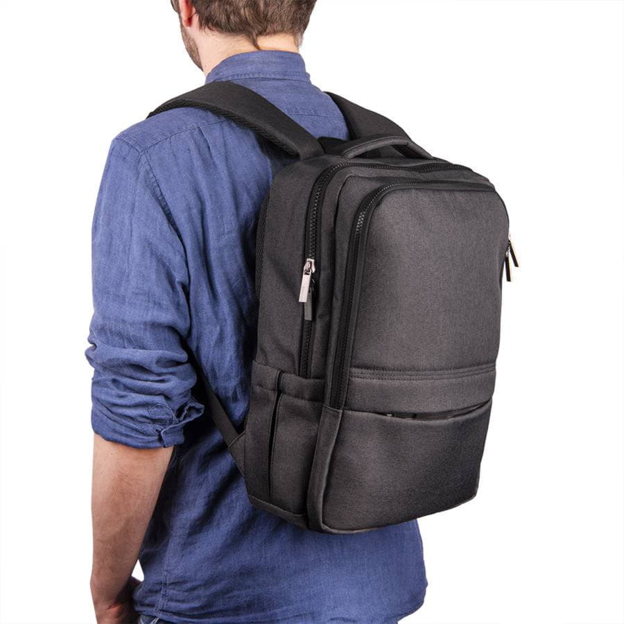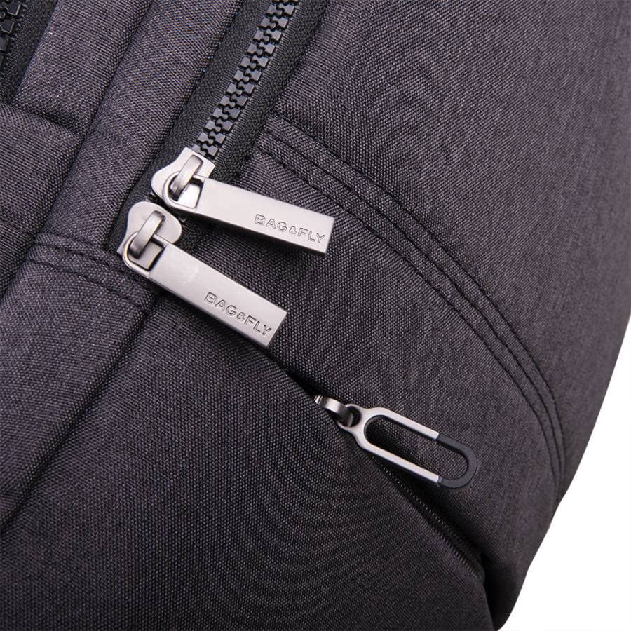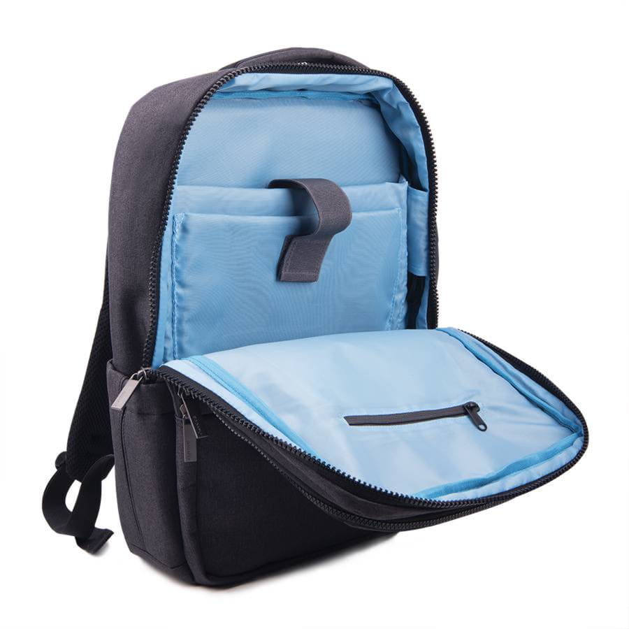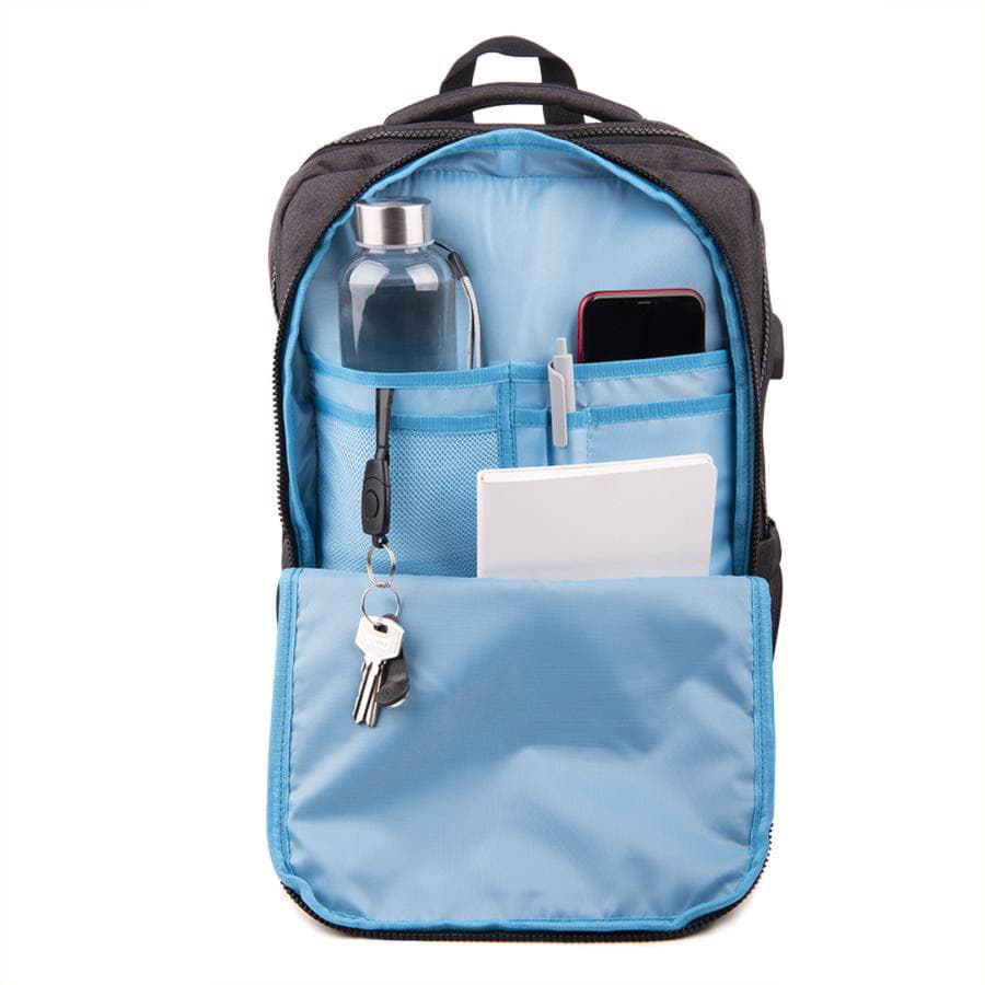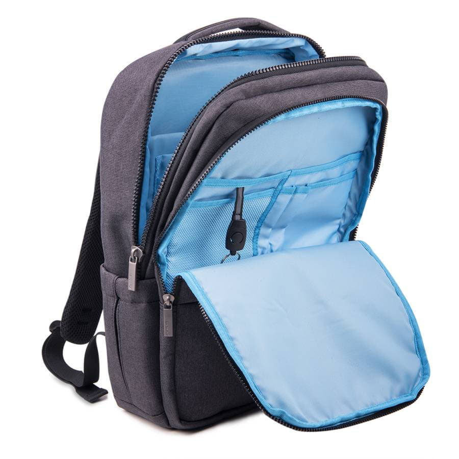 Основное отделение с плотной эргономичной спинкой, дополнительным разделителем, с карманом с RFID защитой для размещения самых ценных предметов и встроенным USB