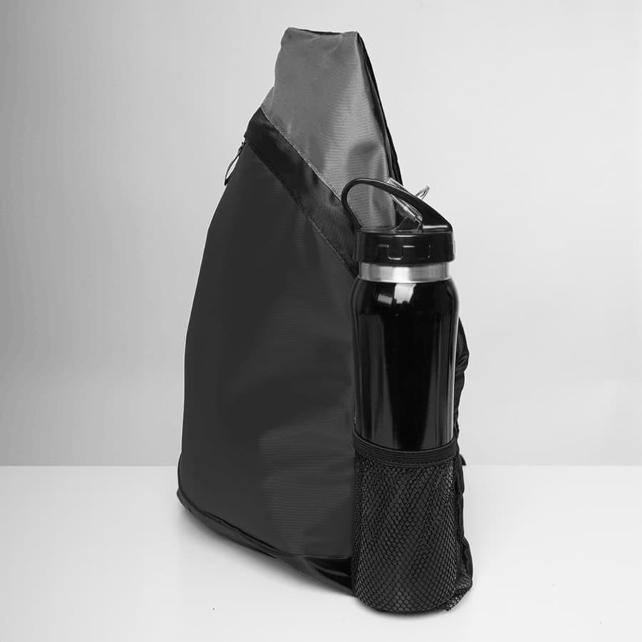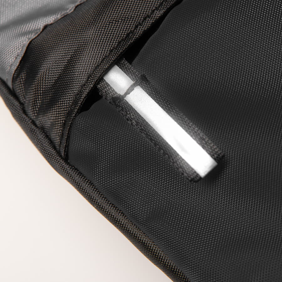 Основное отделение на молнии с пуллером с отражающей поверхностью. Боковой сетчатый карман. Регулируемый усиленный плечевой ремень.