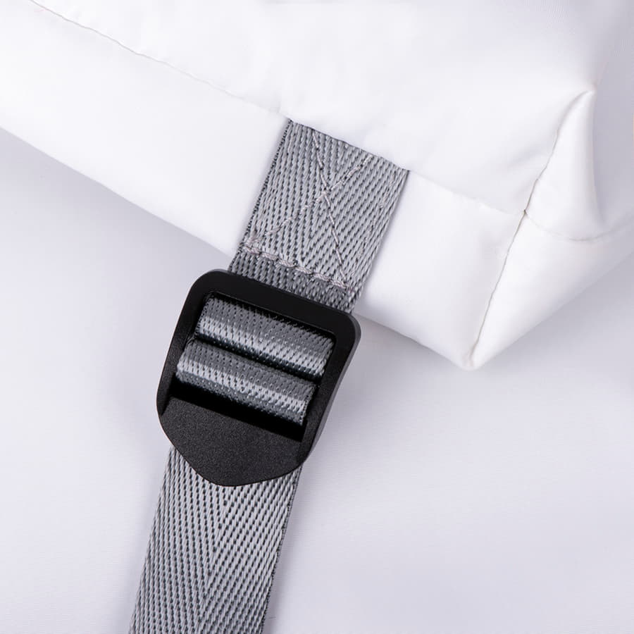 Мягкий контраст серого подклада, серых ремней и ручек с основным белым цветом