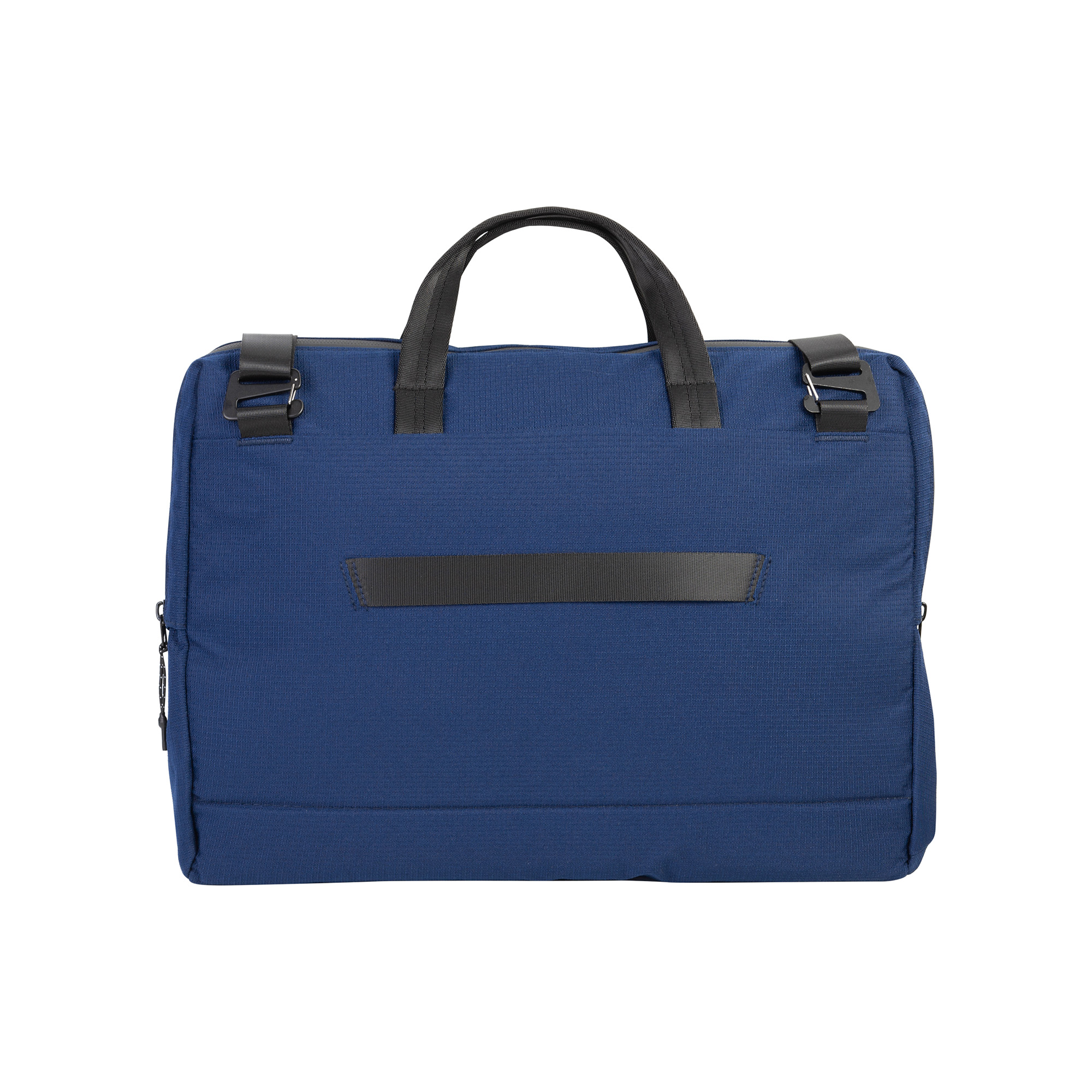 Сумка для ноутбука и документов "LANA". Передний карман с молнией для аксессуаров, карабин для ключей на стропе. Основное отделение с перегородкой для ноутбука до 15". Съемный плечевой ремень, крепление на ручку чемодана. Внешний материал - ткань полученная из океанического пластика, переработано 6,5 бутылок 0,5 л. Рисунок с квадратной ячейкой отсылка к рыболовным сетям - один из крупных источников загрязнения. Реверсивная молния создает закрытый контур, защищает от попадания влаги. Подклад из однотонного серого материала с приятными тактильными свойствами.