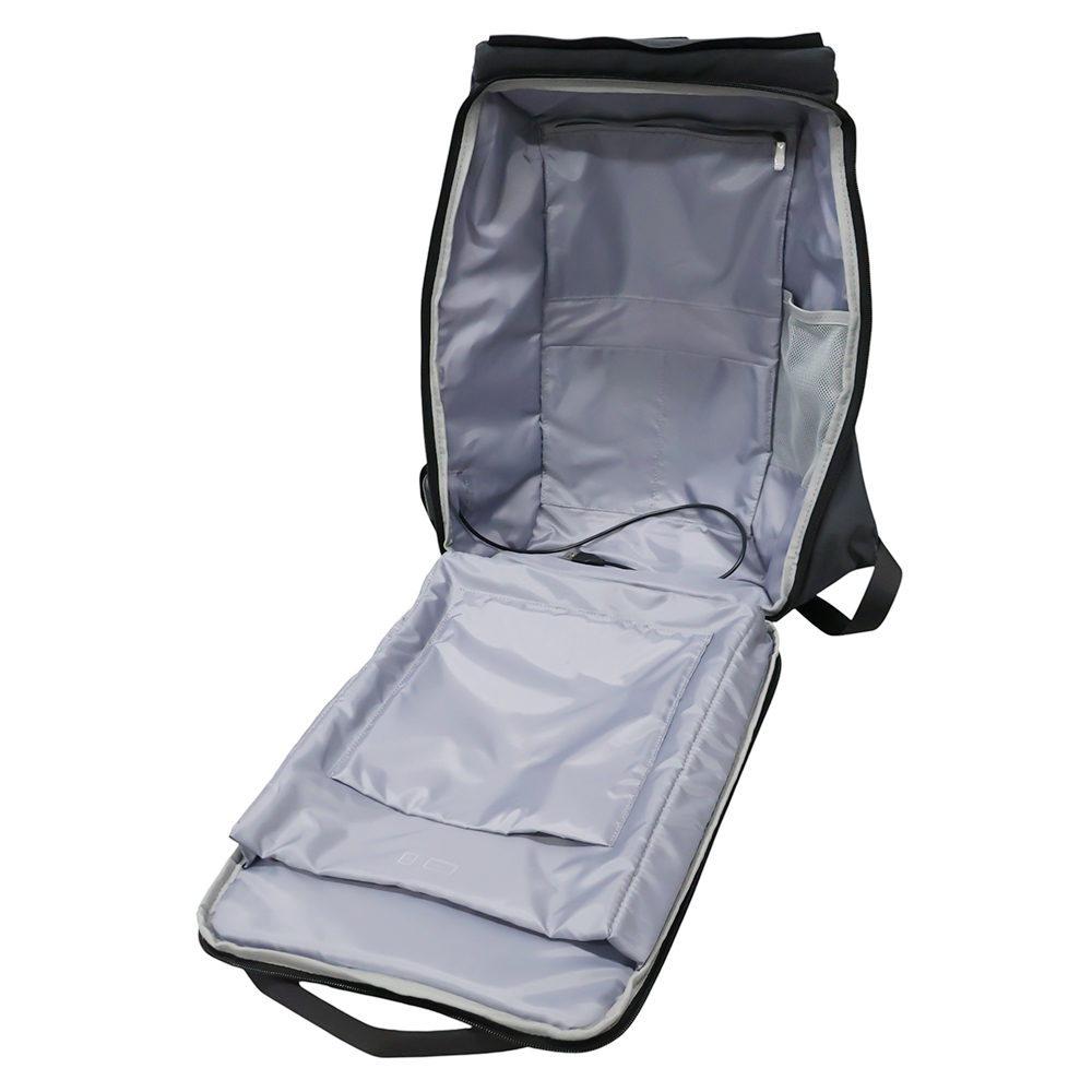 В одном большом отделении разместились уплотнённые карманы для ноутбука 15,6 и планшета 10 дюймов, карман на молнии для документов, карман-органайзер для аксессуаров и ЭКСКЛЮЗИВНАЯ ОПЦИЯ - специальный карман-сетка ДЛЯ АРОМАСАШЕ.