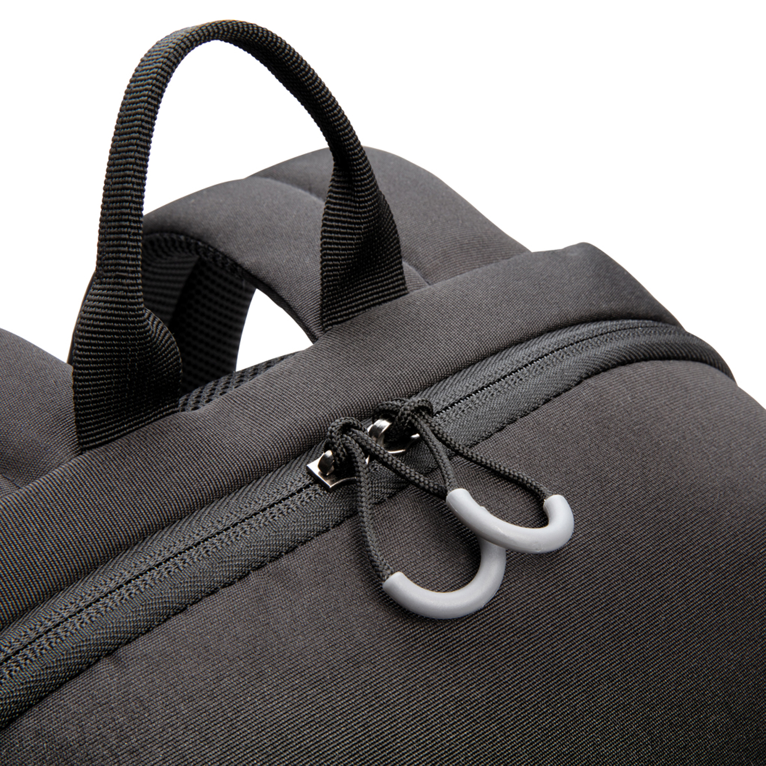 Рюкзак для ноутбука 15,6’’ — это стильное и экологичное решение для города, поездок и путешествий. В просторном основном отделении располагается мягкий карман для ноутбука, который защитит его от царапин и повреждений и несколько небольших кармашков для телефона, внешнего аккумулятора, зарядного устройства и других нужных мелочей. Снаружи есть боковой карман с RFID-защитой, которая не позволит злоумышленникам считать данные с паспорта и банковских карт. Дополнительное удобство обеспечивает встроенный порт USB-A: вы сможете зарядить телефон даже в поездке. Для безопасности по вечерам на переднюю часть рюкзака нанесена светоотражающая полоса. Рюкзак изготовлен из переработанных пластиковых бутылок и не содержит ПВХ. Для создания каждого рюкзака мы использовали 22 поллитровых пластиковых бутылки. Сертифицировано AWARE™. Наличие индикаторных частиц AWARE™ подтверждает, что мы действительно используем переработанные материалы. 2% с продажи каждой вещи, отмеченной сертификатом AWARE™, мы перечисляем в поддержку всемирной организации Water.org.