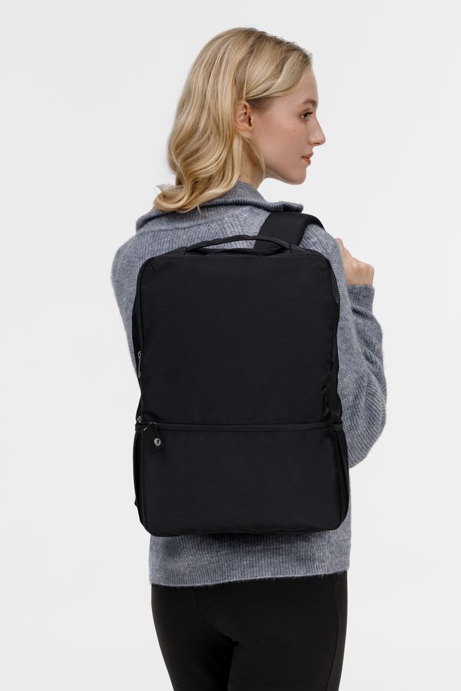 Особенность рюкзака — акцент на безопасность. Продуманная конструкция со смещенной к спинке молнией основного отделения усложняет несанкционированный доступ к содержимому, а пуллер на молнии наружного кармана можно пристегнуть к боковой части рюкзака, чтобы уменьшить вероятность случайного открытия.