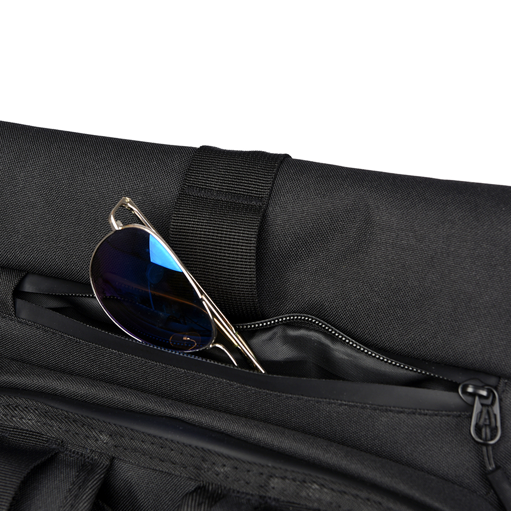 Два боковых кармана значительно расширяют функционал: один на водонепроницаемой молнии со скрытым звеном с карманом-сеткой для мелких гаджетов внутри. Второй, открытый с возможностью увеличения объёма с помощью молнии позволит разместить бутылку, зонт и всё что необходимо для быстрого доступа