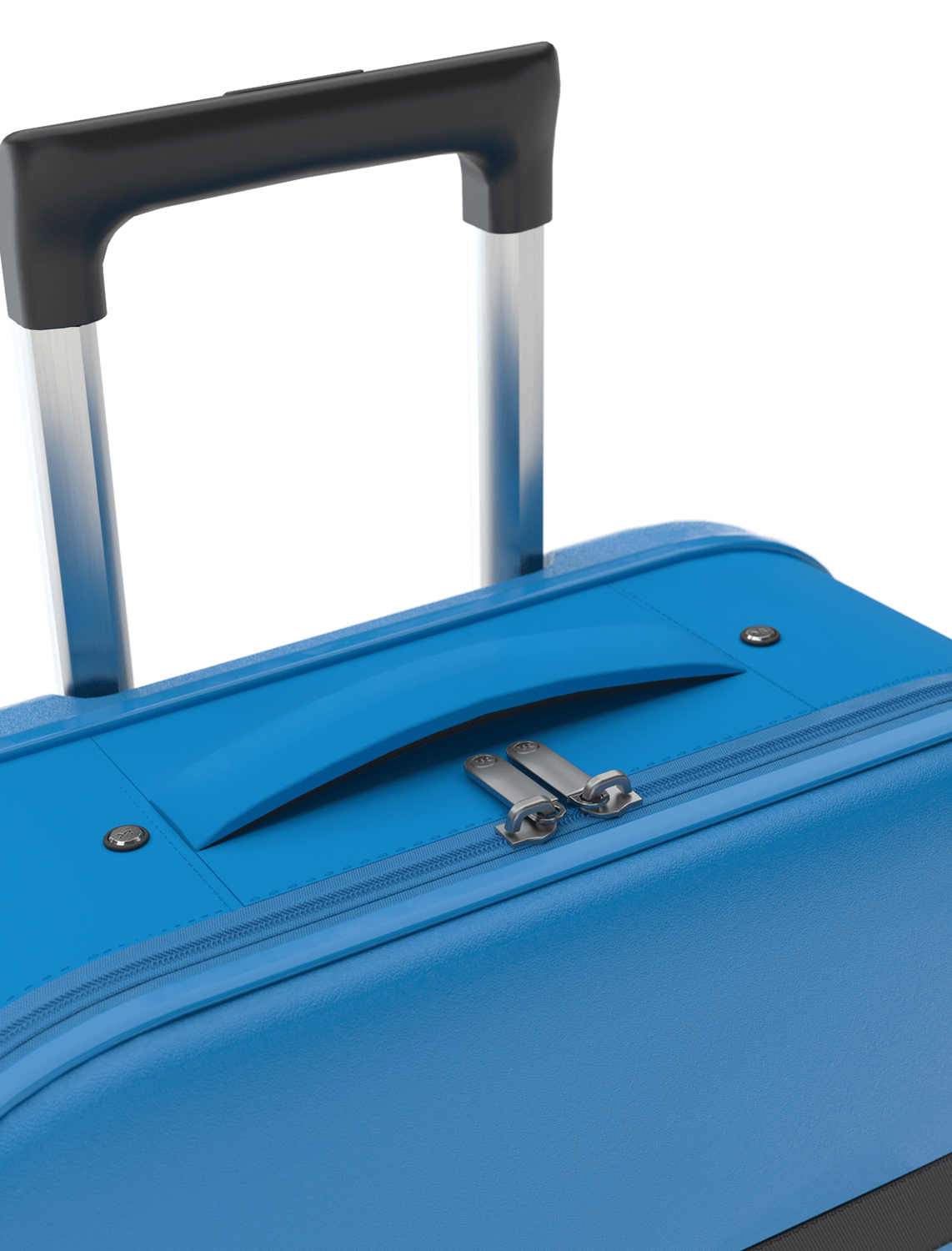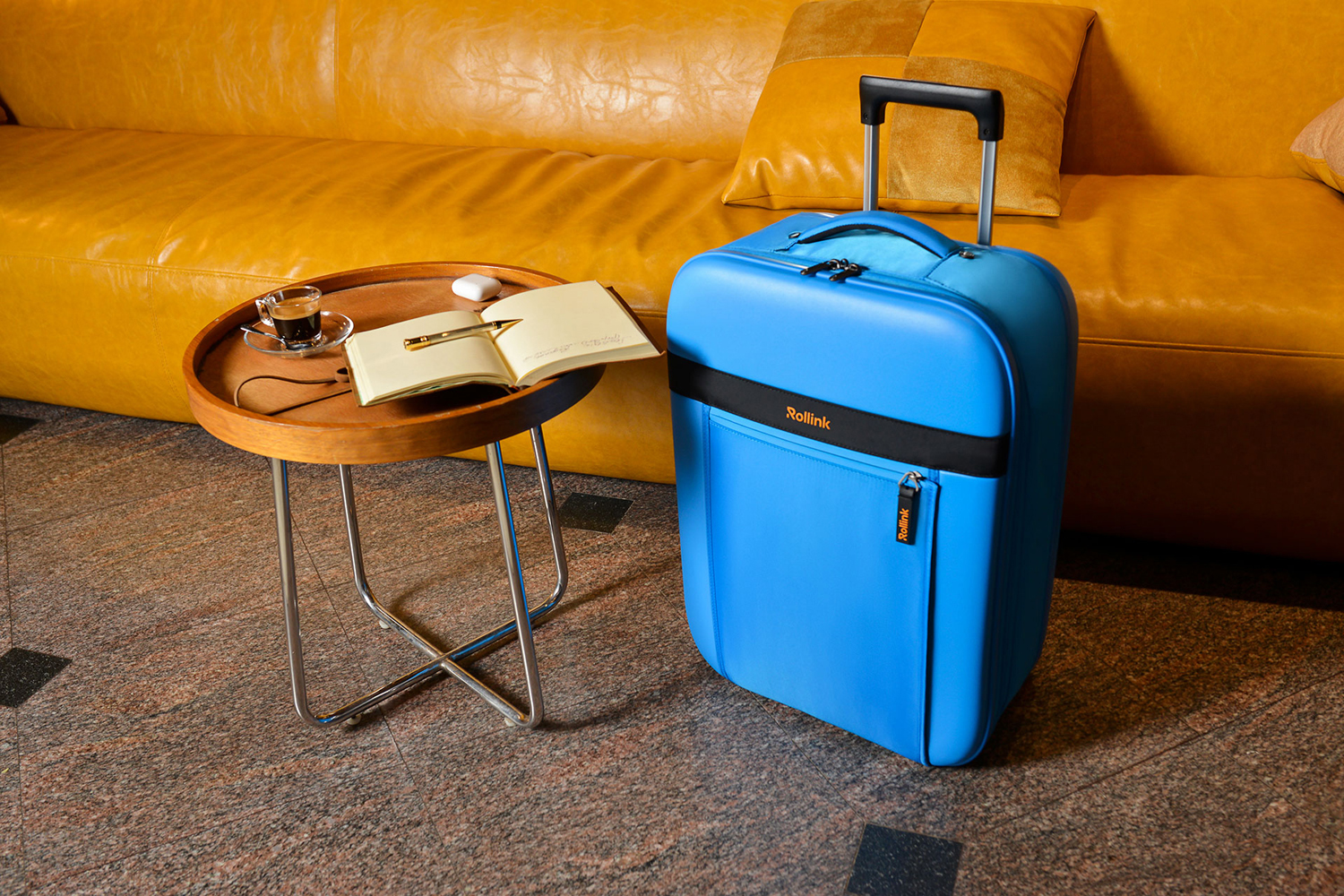 Складной легкий чемодан Rollink Aura ярко-синего цвета. Размер 55х40х20 см. В сложенном виде толщина составляет 8,5 см, с колёсами 10,5 см. Объем 40 л. Вес 2,5 кг. Жесткие стенки сделаны из поликарбоната повышенной ударопрочности. Бока мягкие, из плотного нейлона с высокой водоотталкивающей способностью и высококачественной молнией в цвет чемодана. Чемодан уверенно стоит вертикально даже в сложенном состоянии. Внутри три откидывающихся жестких клапана на дне и боках чемодана, крепятся липучками и сохраняют форму чемодана в собранном виде. Внутри чемодана эластичная Х-образная стяжка для фиксации предметов и большой сетчатый карман на молнии. На передней стенке чемодана расположен большой easy access карман 24х34 см на водозащищенной молнии с несколькими отделениями для ноутбука, документов и мелочей. Удлиненная надежная выдвижная телескопическая ручка из алюминия с несколькими уровнями фиксации высоты ручки (от пола 86/97/107 см) для людей разного роста и удобная мягкая ручка сверху чемодана, чтобы было удобно нести его в руках. 2 колеса со специальным покрытием и подшипниками для более плавного и бесшумного передвижения. Вшитая эластичная стяжка с магнитной пряжкой фиксирует чемодан в сложенном состоянии. Упакован в индивидуальную белую картонную коробку 58х42х11 см с ручкой.