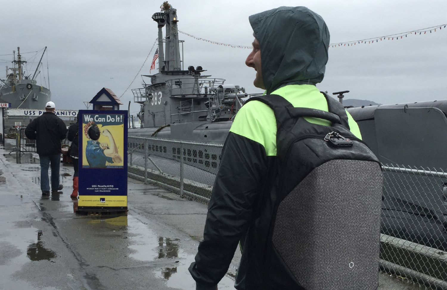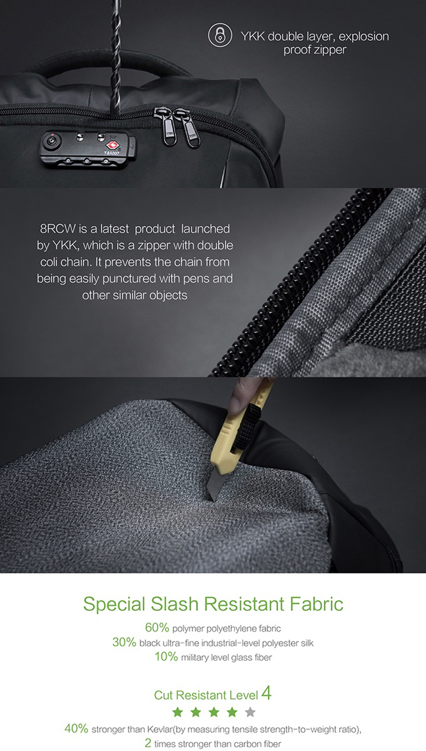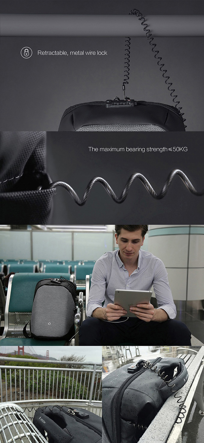 • Оснащен стальным тросом который можно зафиксировать бегунком молнии в кодовом замке