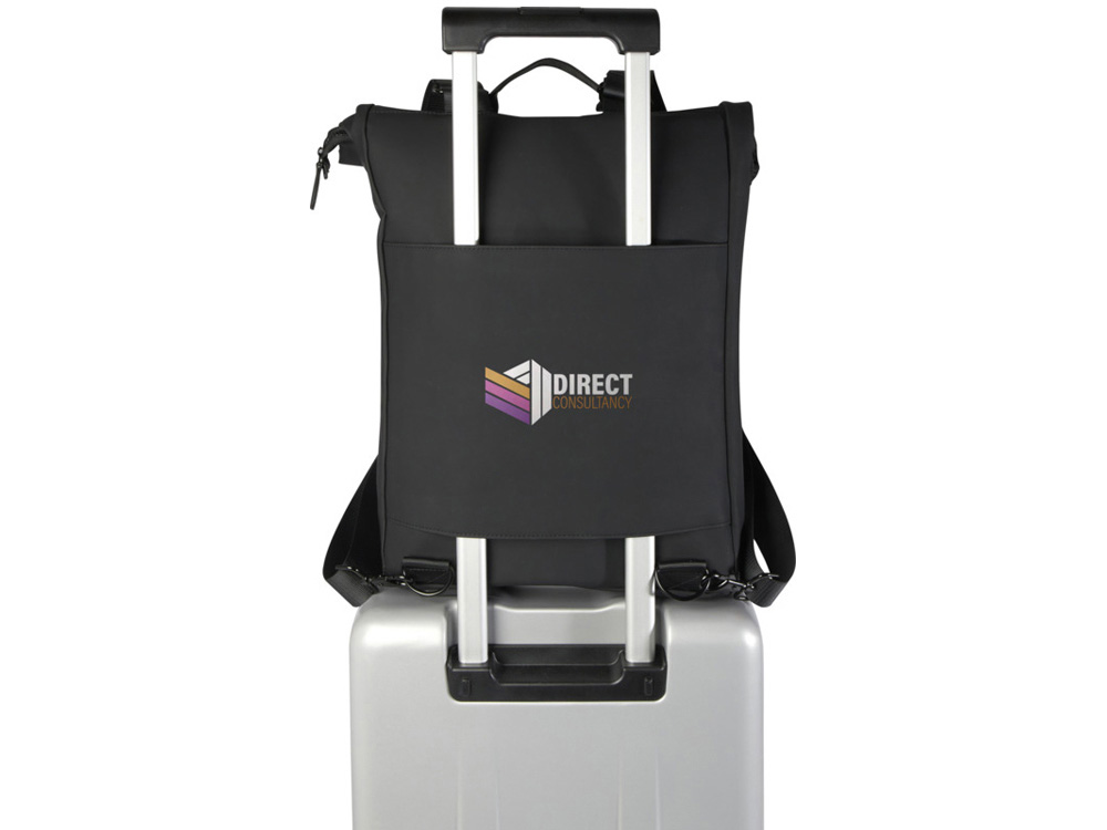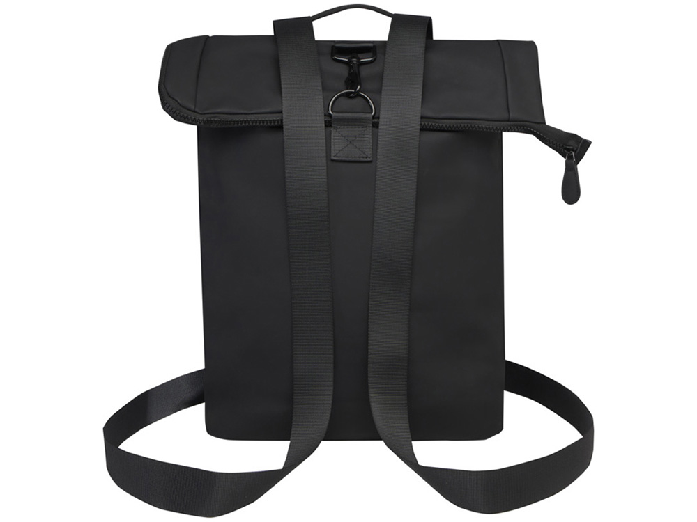 Рюкзак со сворачивающимся верхом Turner на 51% изготовлен из переработанного пластика, сертифицированного по стандарту GRS, а подкладка изготовлена из 100% переработанного ПЭТ-пластика, сертифицированного GRS. Рюкзак имеет мягкое отделение для ноутбука с диагональю 15,6 дюйма, мягкое отделение для планшета, внутренний ремешок для хранения бутылки с водой и карман на молнии для мелочей. Основное отделение имеет сворачиваемый верх, который можно надежно застегнуть с помощью пряжки. Кроме того, багажный ремень на задней стороне позволяет легко прикрепить рюкзак к чемодану на колесиках, что делает его удобным спутником в путешествии. Объем: 12 литр. 51% GRS recycled PU, 49% PU.