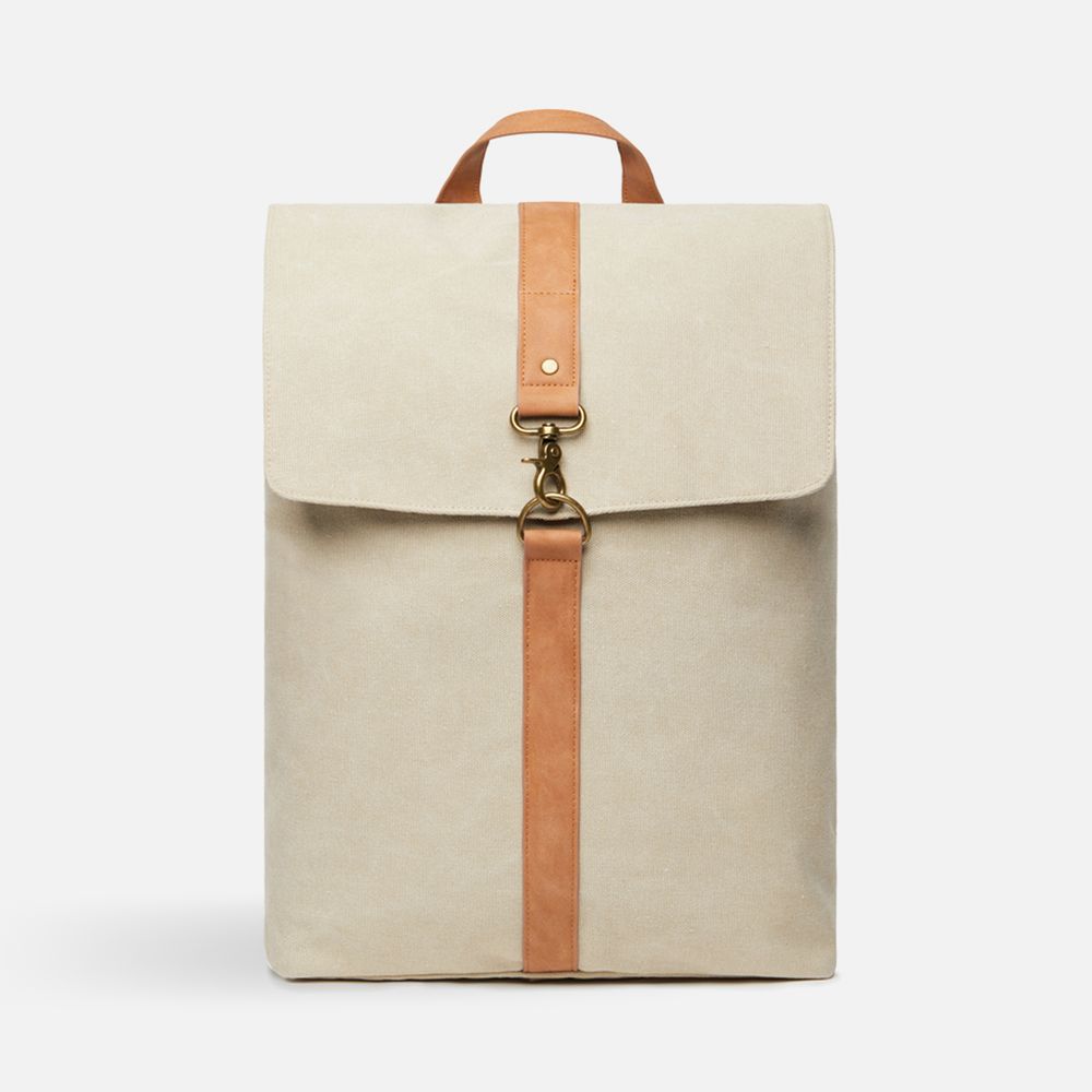 Рюкзак Bosler изготовлен из переработанного канваса: он не только выглядит модно, но и демонстрирует заботу об окружающей среде. Рюкзак оснащен отделением для ноутбука и привлекает внимание контрастными деталями из полиуретана и латунной фурнитурой.