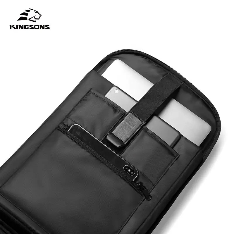 Рюкзак Kingsons KS3233W защитит ваши вещи не только от непогоды, но и от карманников. Сверху под прочной тканью спрятан кодовый замок, блокирующий на месте бегунки. Внутри одно вместительное отделение с отсеками для ноутбука, планшета и множеством карманов разного размера и дизайна для других важных мелочей. На внешней стороне расположены дополнительные карманы: открытые для термоса и зонта, а также потайной для ценных вещей. На спинке предусмотрено крепление, которое позволяет зацепить рюкзак на выдвижной ручке чемодана. Для удобства зарядки гаджетов на ходу в торцевой части предусмотрен USB-порт, к которому необходимо предварительно подключить свой повербанк.