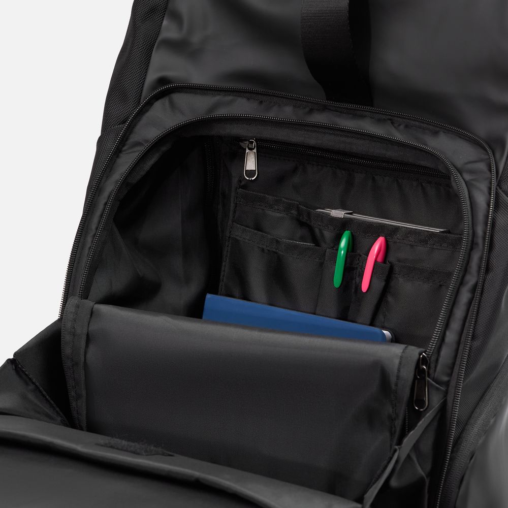 Основное вместительное отделение с боковой молнией обеспечивает легкий и удобный доступ к содержимому, а внутренняя панель‑органайзер позволяет аккуратно разместить мелкие предметы и поддерживать порядок внутри рюкзака.