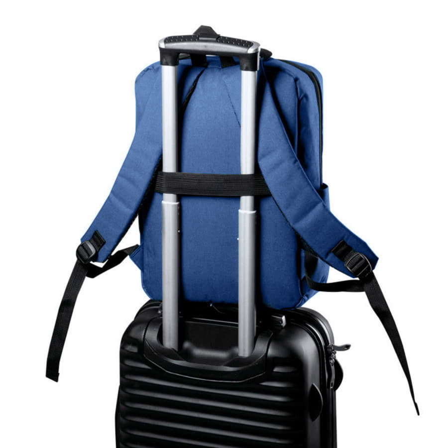 · Специальная стропа на спинке для крепления рюкзака на выдвижную ручку чемодана