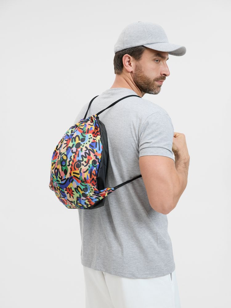 Рюкзак-мешок Bolsana с печатью на заказ — это полноценный продукт, в котором дизайн становится частью самой вещи и открывает возможности для сложной графики, градиентов, паттернов и ярких визуальных решений. Такие рюкзаки выглядят продуманнее и эстетичнее по сравнению с классическим промо и воспринимаются как стильный аксессуар, а не как рекламный носитель — именно поэтому их используют в повседневной жизни, а не откладывают. Бренд в этом случае становится частью визуального образа, оставаясь в поле зрения дольше и работая эффективнее.