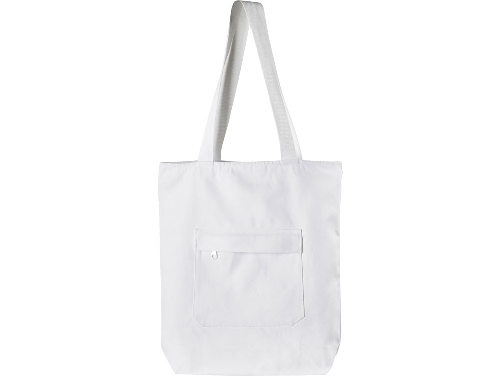 Преимущество этой сумки в наличии застежки молнии на основном отделении - ее содержимое остается закрытым. Донная складка увеличивает вместимость. Снаружи расположен карман на молнии. Парусиновые ручки в тон сумки.