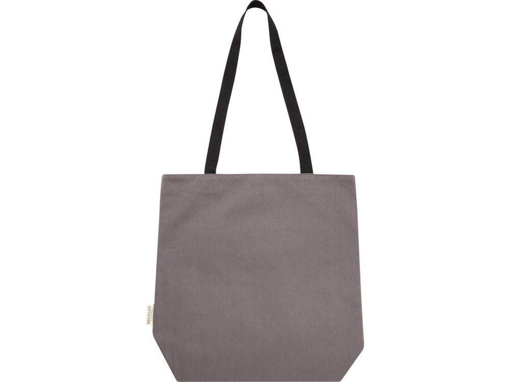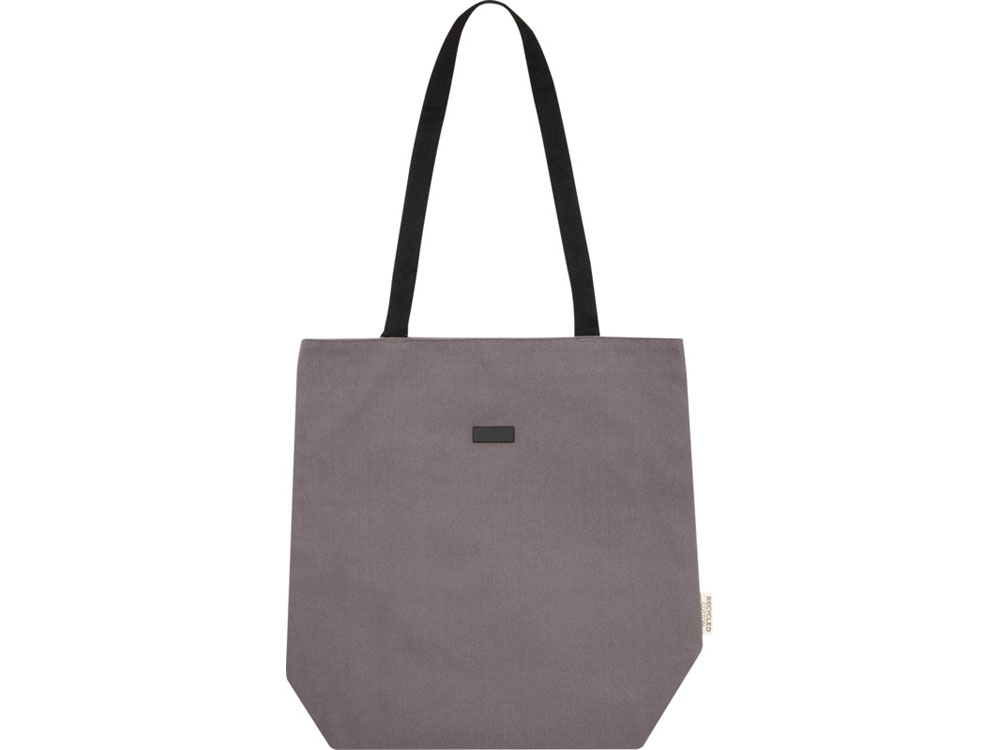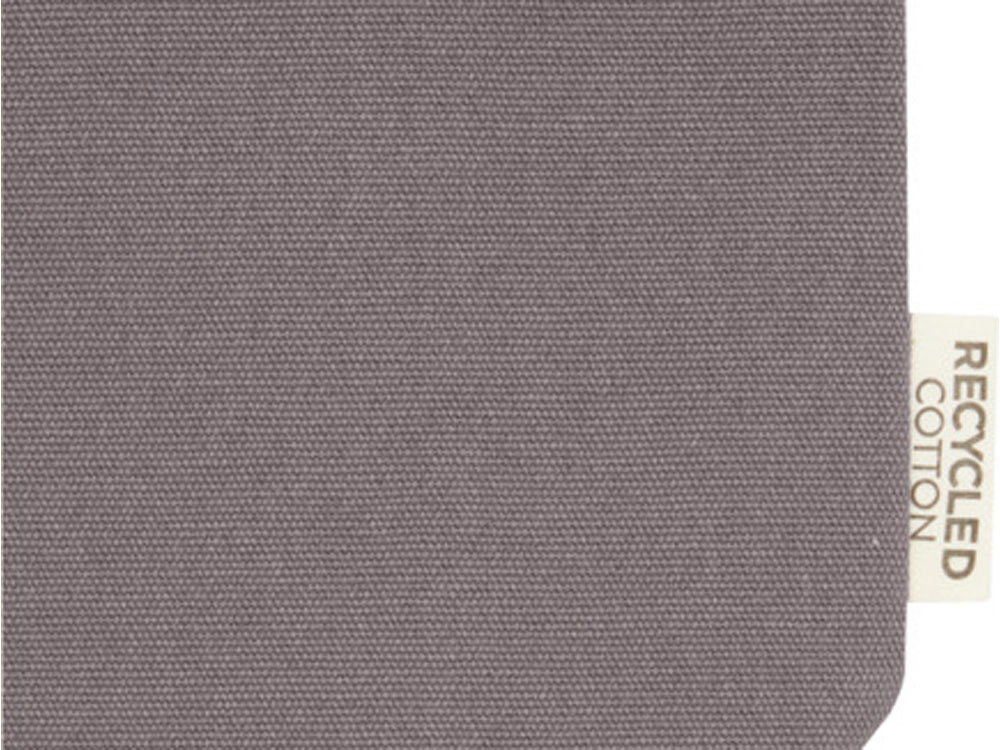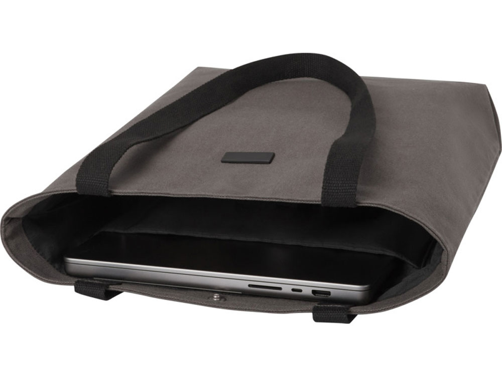 Эко-сумка изготовлена из переработанного холста, сертифицированного по стандарту GRS, и имеет подкладку из переработанного ПЭТ-пластика, сертифицированного по стандарту GRS. Универсальная эко-сумка имеет мягкое отделение для ноутбука с диагональю 15 дюймов и два карманных рукава внутри для телефона, кошелька или аксессуаров, а также удобную застежку на кнопке для открытия и удобные плетеные ручки из хлопка. Декоративная металлическая пластина может придать логотипу сияние благодаря утонченному матовому покрытию.