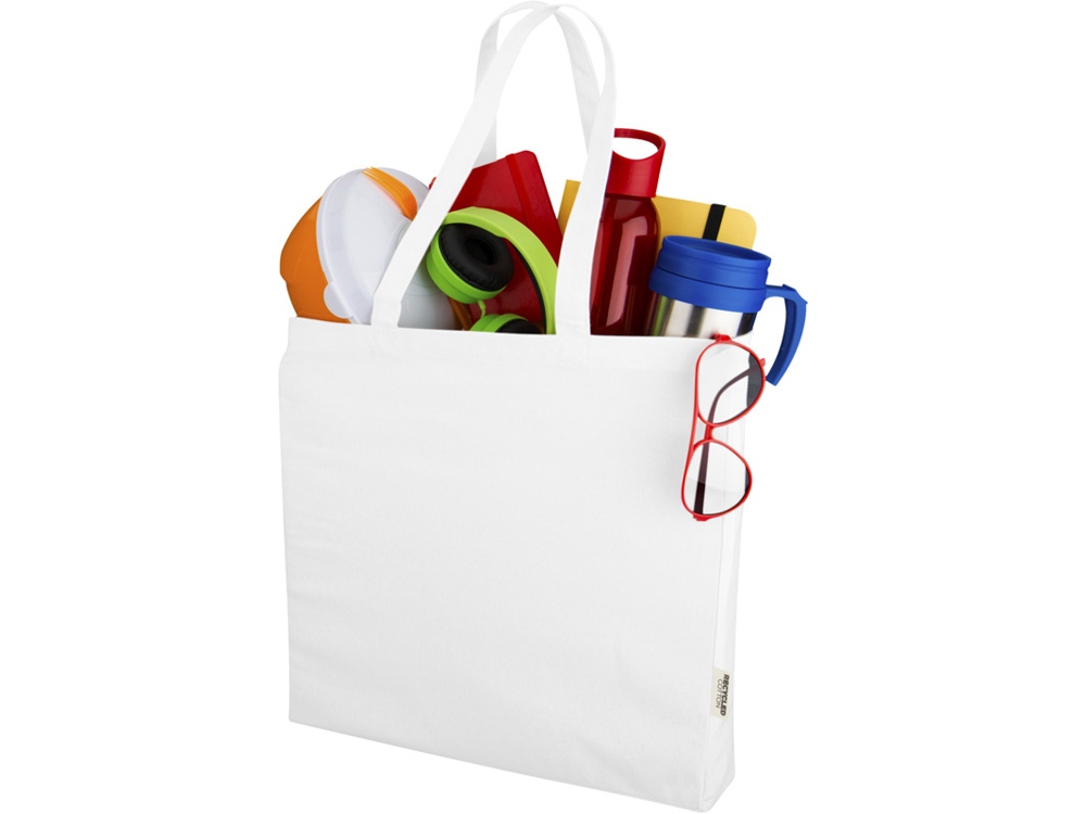 Эко-сумка Odessa, изготовленная из 100% переработанного хлопка, сертифицированного по стандарту GRS, создана для удобного ношения благодаря ручкам на плечо длиной 30 см и большому основному отделению с клинчиком. Независимо от того, хотите ли вы носить с собой тяжелые книги или продукты, эта сумка предназначена для удовлетворения любых потребностей. Методы печати, доступные для этой эко-сумки, также сертифицированы по стандарту GRS, что гарантирует прозрачность и сертификацию всей цепочки поставок. Хлопок плотностью 220 г/м² обеспечивает долговечность и надежность и позволяет переносить вес до 10 кг. Сделано в Индии. Recycled cotton, 220 g/m2.