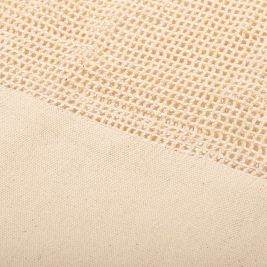 Верхняя часть сумки выполнена из хлопковой сетки для естественной вентиляции, нижняя часть из плотного хлопка, на которой можно сделать нанесение вашего логотипа.