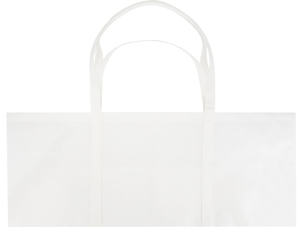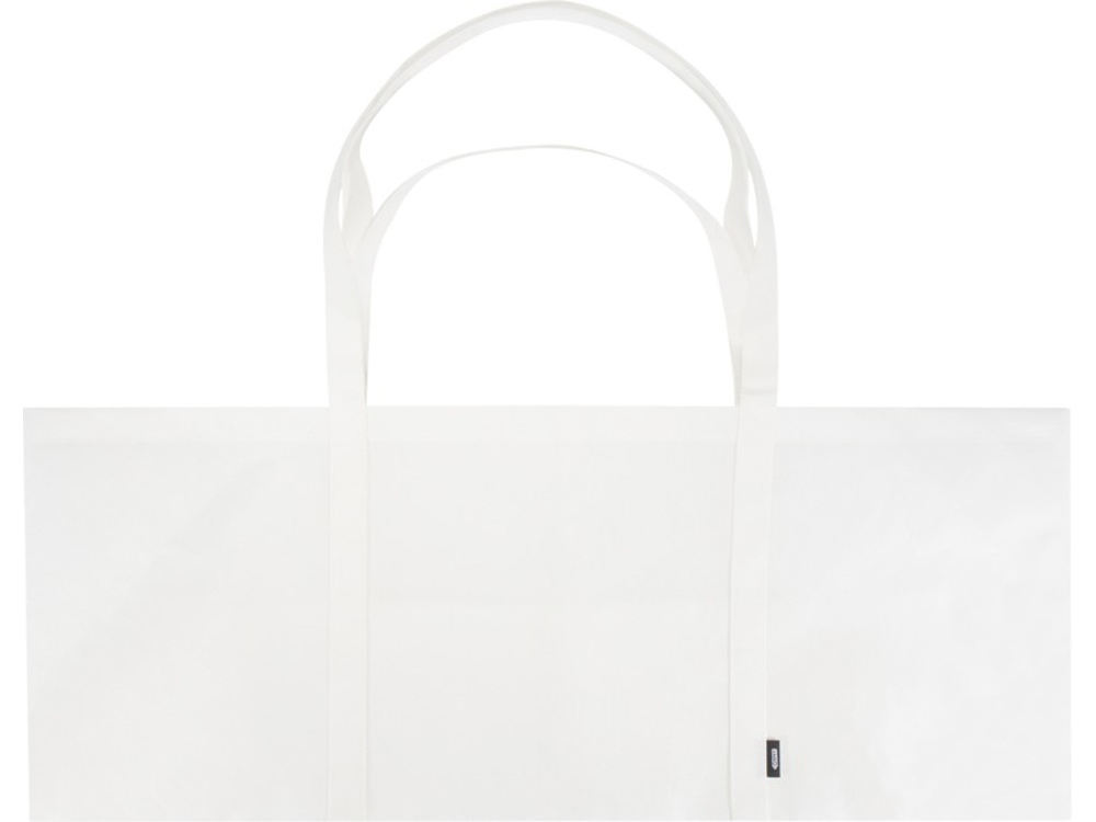 Сделанная из прочного и стойкого к разрывам нетканого RPET, эко-сумка Jumbo из переработанного материала, сертифицированного согласно GRS, имеет очень большую вместимость до 65 литров и прекрасно подходит для различных мероприятий, таких как походы за покупками в супермаркет или на пляж и пикник. Оснащена усиленными короткими ручками (24 см) и длинными ручками (37 см) для максимального удобства переноски. Легко складывается и убирается, когда не используется. Выдерживает вес до 15 кг. GRS certified recycled polyester.