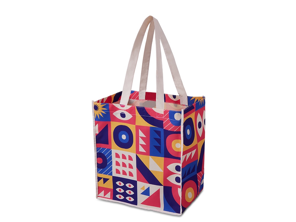 Нестандартная форма сумки увеличивает брендируемую поверхность в два раза - теперь запечать можно не только переднюю и заднюю поверхность, но и боковые.