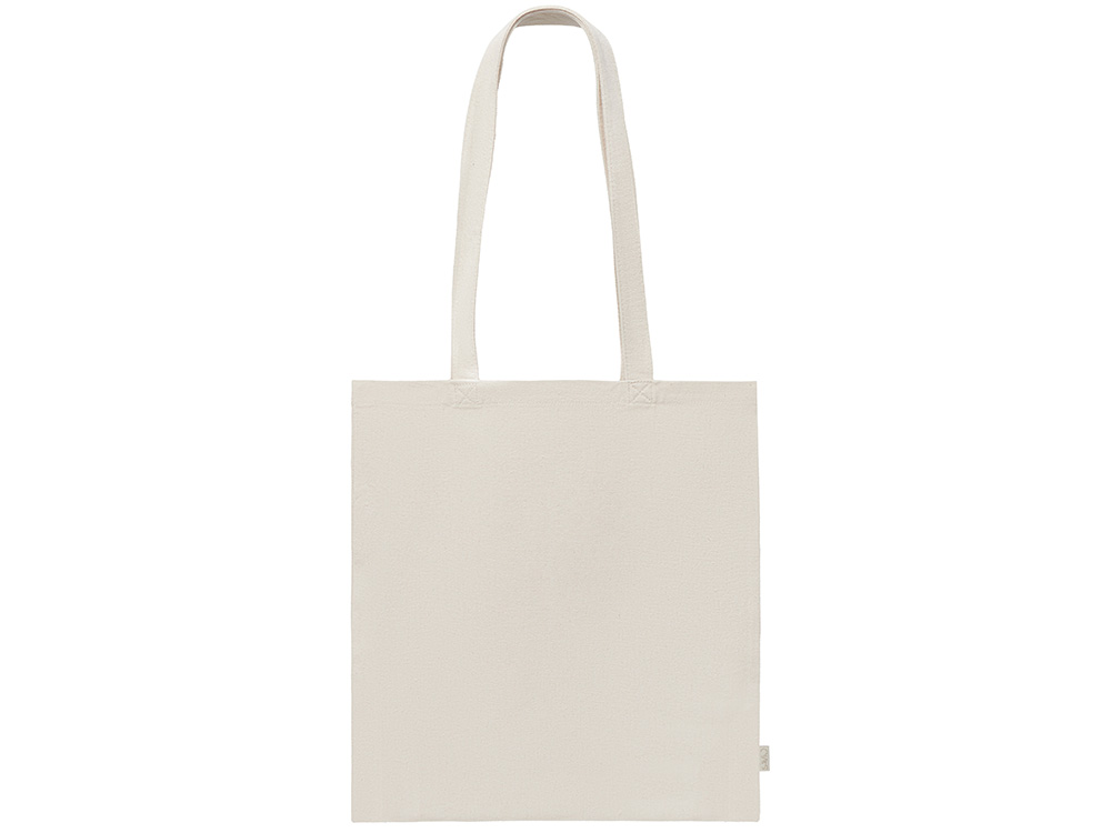 Сумку для покупок и поездок из переработанного хлопка высокой плотности 280 г/м2 удобно иметь всегда под рукой, т.к. она сочетает в себе оптимальный размер и комфортную длину ручек 68 см. Переработанный хлопок - более долговечный материал, в состав которого входит полимерное волокно - полиэстер.