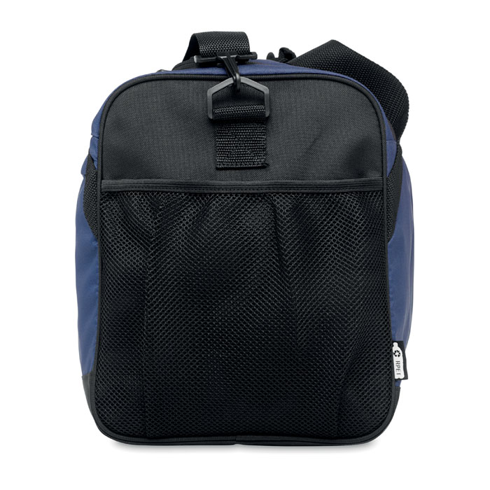 Спортивная или дорожная сумка из 600D RPET с большим фронтальным и внутренним карманом на молнии и регулируемым съемным плечевым ремнем.
