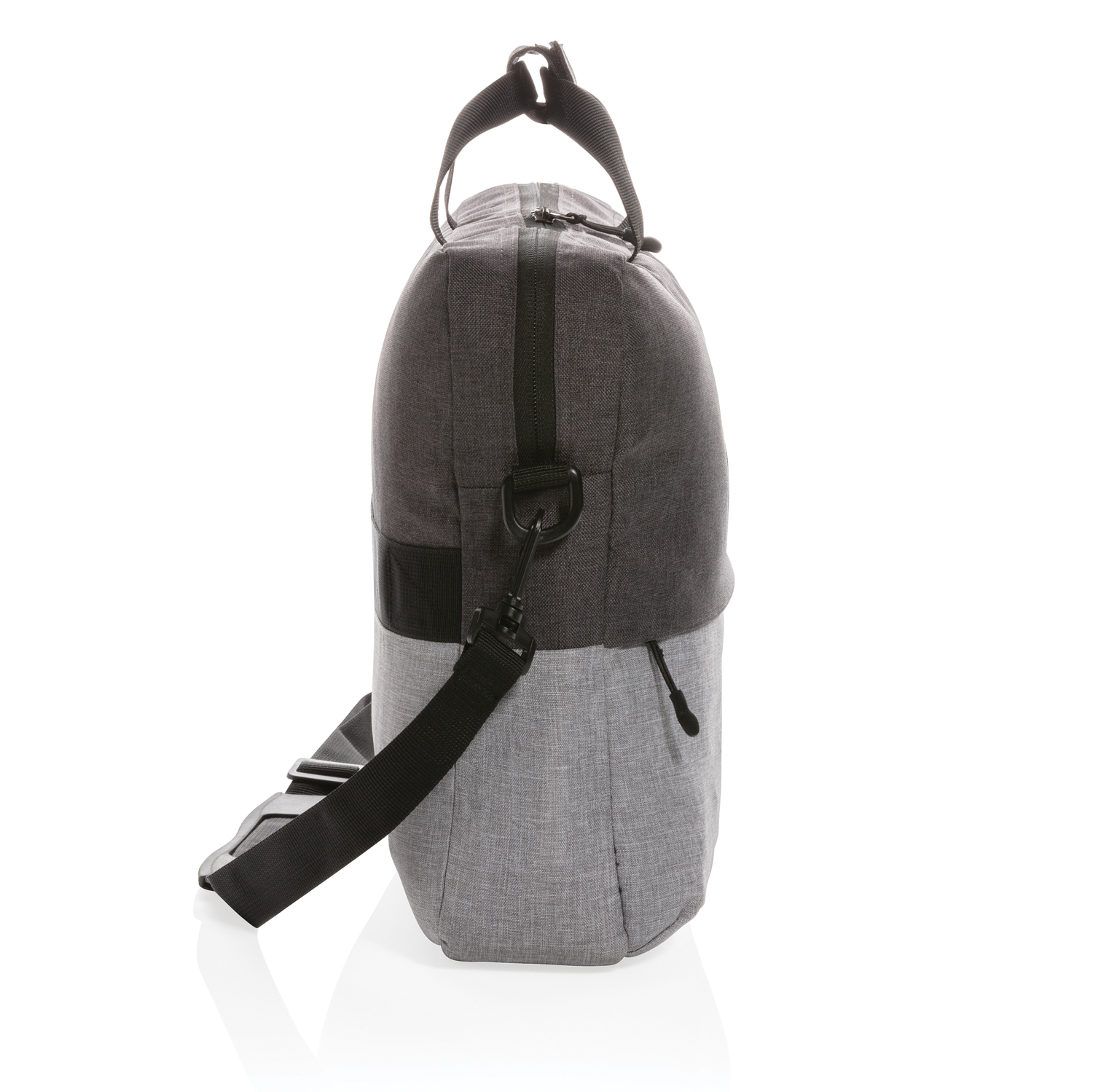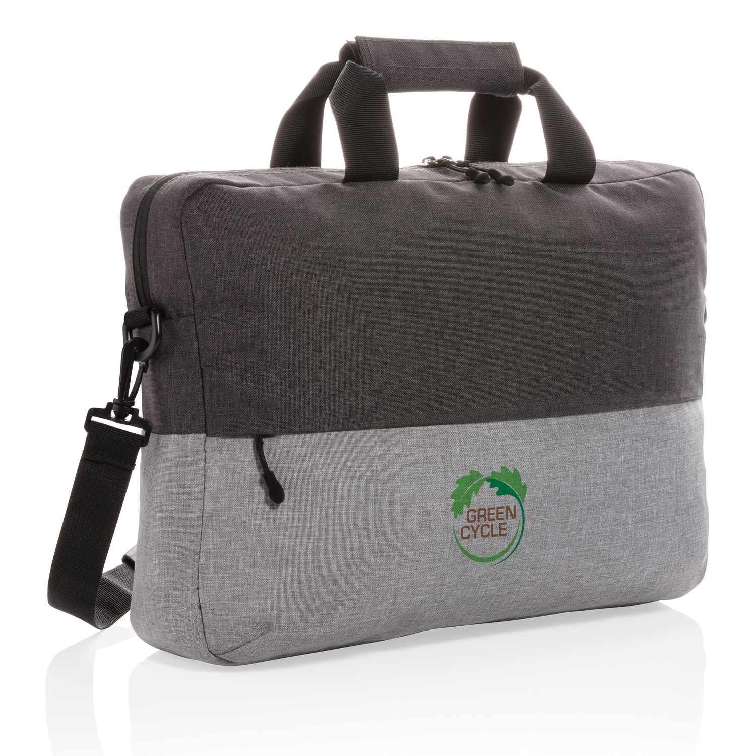 Ноутбук и другие необходимые аксессуары надежно упакованы в эту сумку для ноутбука. Эта двухцветная сумка для ноутбука изготовлена из RPET и отличается минималистичным дизайном. Подходит для 15,6-дюймового ноутбука. Во внутреннем кармане предусмотрена функция RFID для защиты от скимминга. Не содержит ПВХ.