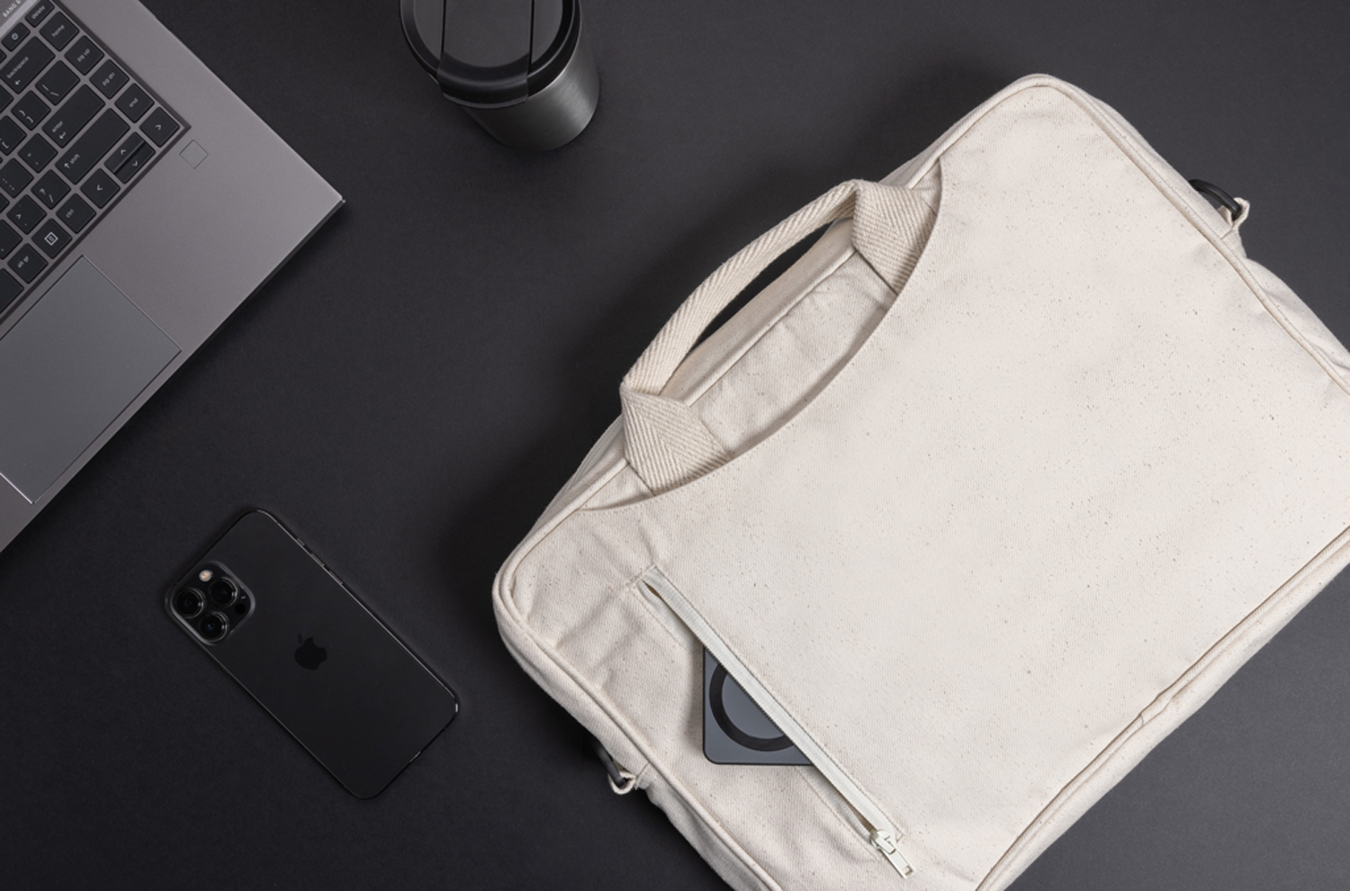 Сумка для ноутбука 15,4’’ — это стильное решение для тех, кто предпочитает классику и заботится о природе. Внутреннее отделение для ноутбука с мягкой подкладкой гарантирует безопасность техники. Два внешних кармана позволят вам отправиться на встречу, взяв с собой все необходимое. Сумка изготовлена из переработанного твила — прочной хлопковой ткани с фактурной поверхностью. Благодаря этому внешний вид сумки получился оригинальным и необычным, с мелкими вкраплениями более темного цвета. Плотность ткани — 340 г/м². Сертифицировано AWARE™. Наличие индикаторных частиц AWARE™ подтверждает, что мы действительно используем переработанные материалы. 2% с продажи каждой вещи, отмеченной сертификатом AWARE™, мы перечисляем в поддержку всемирной организации Water.org.