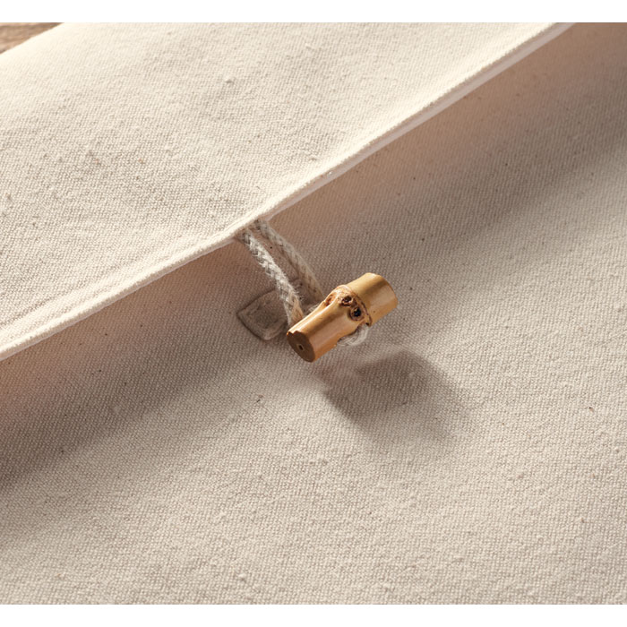 Чехол для ноутбука 15 дюймов из хлопка плотностью 220 гр/м². Внутренняя подкладка 120 гр/м². Застежка на пуговицу из бамбука.