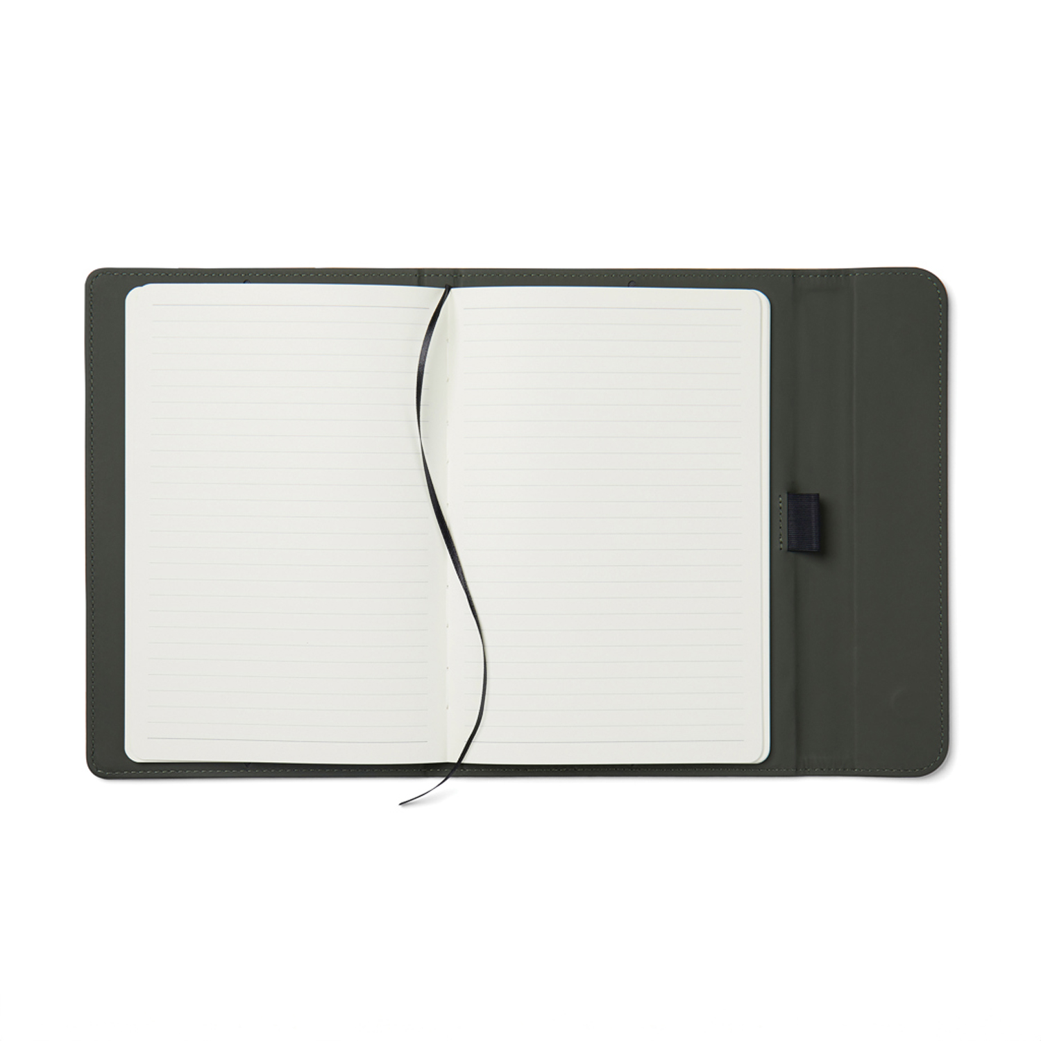 Стильный блокнот из коллекции Baltimore станет хорошим подарком для коллег, клиентов и партнеров. Его обложка изготовлена из переработанного полиуретана и оснащена магнитной застежкой, а также петлей для ручки. Благодаря покрытию soft-touch блокнот очень приятен на ощупь. Внутри 80 линованных листов (160 страниц) из переработанной бумаги плотностью 70 г/м². Такая плотность подходит для записей или создания скетчей. Внутреннюю часть можно легко заменить, когда все листы будут исписаны. Содержание вторичных материалов: 72% от общего веса изделия. Сертифицировано GRS. Эта сертификация полностью контролирует путь поставок переработанных материалов и гарантирует их наличие в изделии.