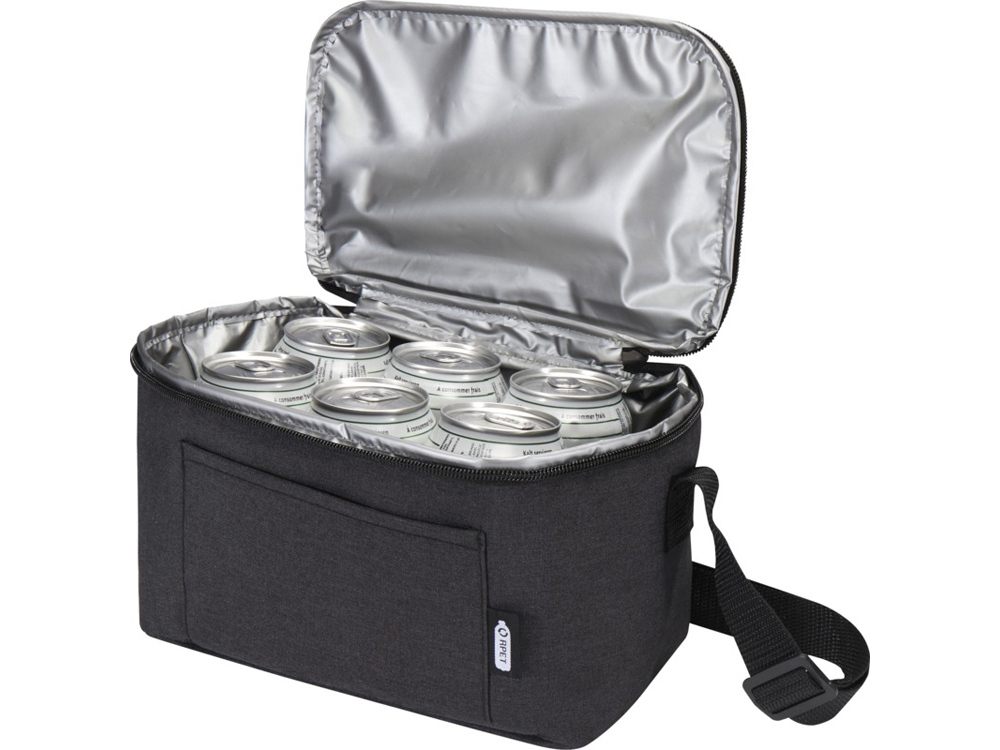 С сертифицированной GRS сумкой-холодильником из переработанных материалов Tundra на 6 банок вы сможете сохранить еду и напитки прохладными в солнечный жаркий день. Сумка имеет основное отделение, открытый передний карман и регулируемые плечевые ремни. Объем: 5 литр. GRS certified recycled polyester.